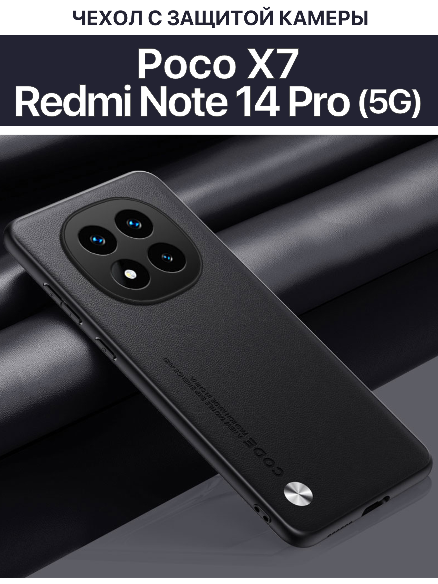 Чехол для Poco X7/ Redmi Note 14 Pro (5G) кожаный с тиснением / Поко Х7 с защитой камеры (черная) 600 ₽