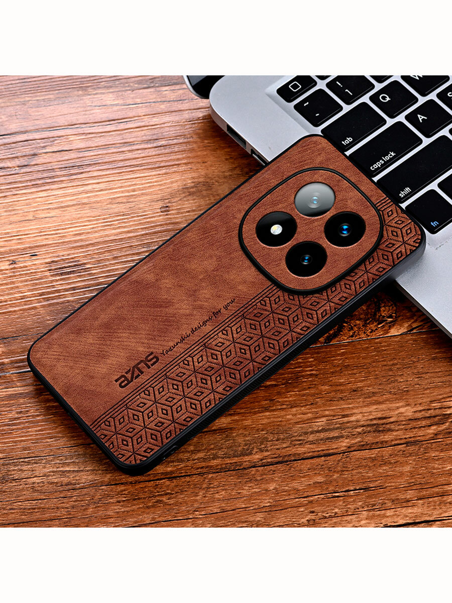Чехол для Poco X7/ Redmi Note 14 Pro (5G) кожаный с тиснением / Поко Х7 с защитой камеры (коричневая) информация: