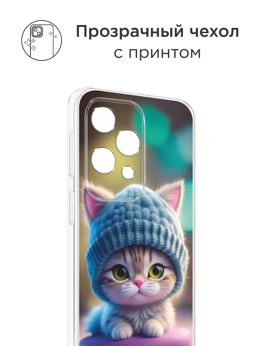 10 цен на Чехол на Tecno Camon 30 Premier / Текно Камон 30 Премьер с принтом Котик в голубой шапочке
