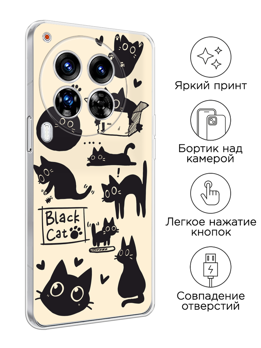 Отзывы на Чехол на Tecno Camon 30 Premier / Текно Камон 30 Премьер с принтом Чёрный котик рисунки