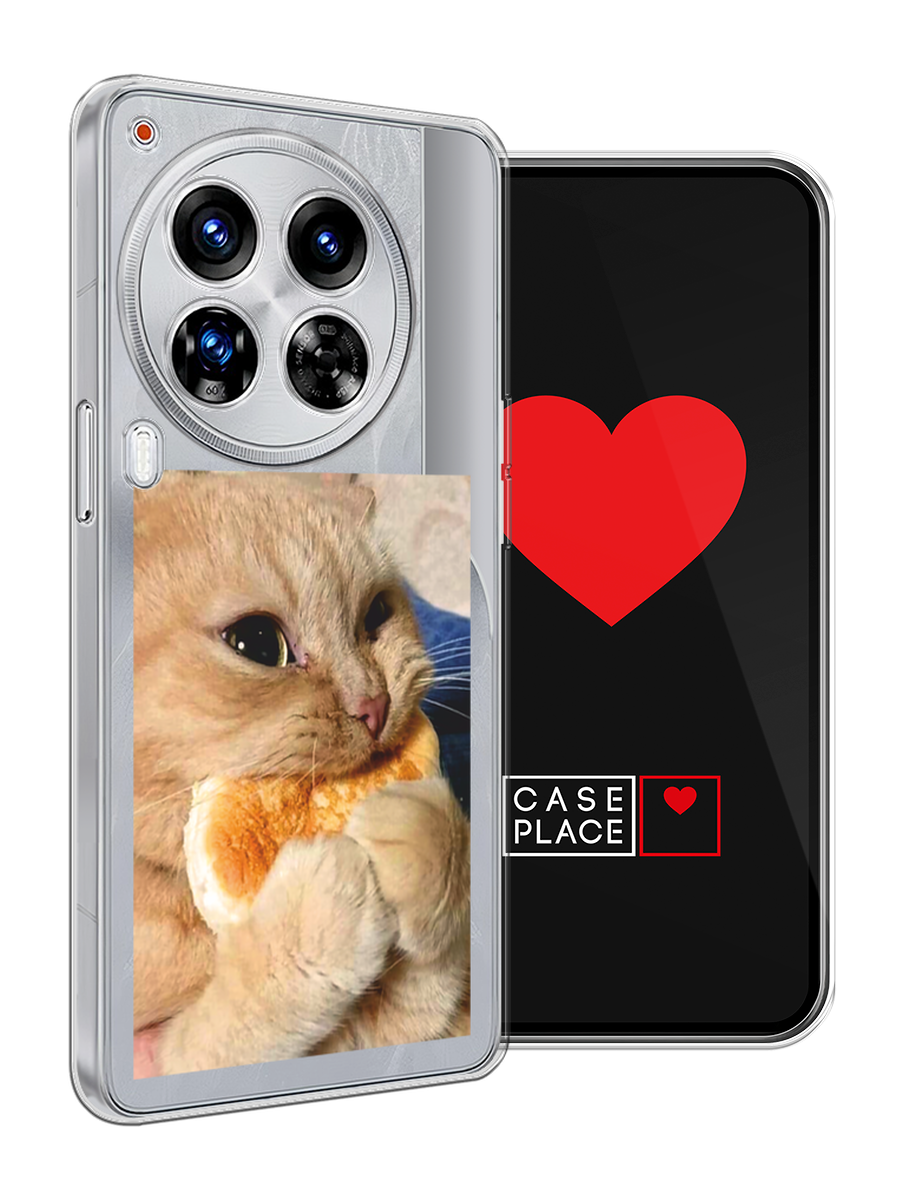 10 цен на Чехол на Tecno Camon 30 Premier / Текно Камон 30 Премьер с принтом Котик кушает, прозрачный