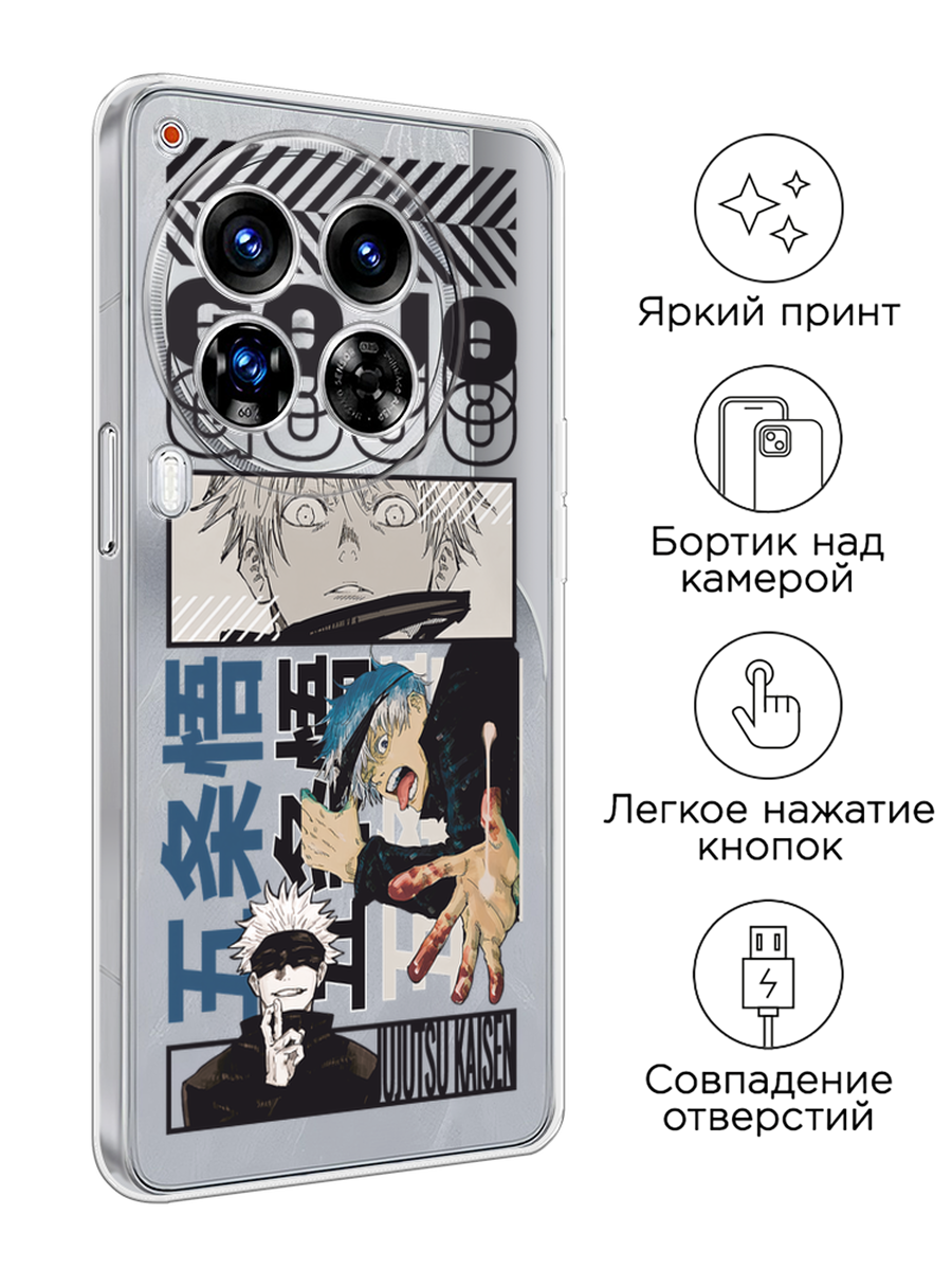 10 цен на Чехол на Tecno Camon 30 Premier / Текно Камон 30 Премьер с принтом Годжо коллаж black, прозрачный