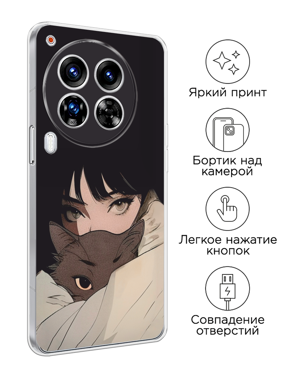 10 цен на Чехол на Tecno Camon 30 Premier / Текно Камон 30 Премьер с принтом Аниме девушка с котиком