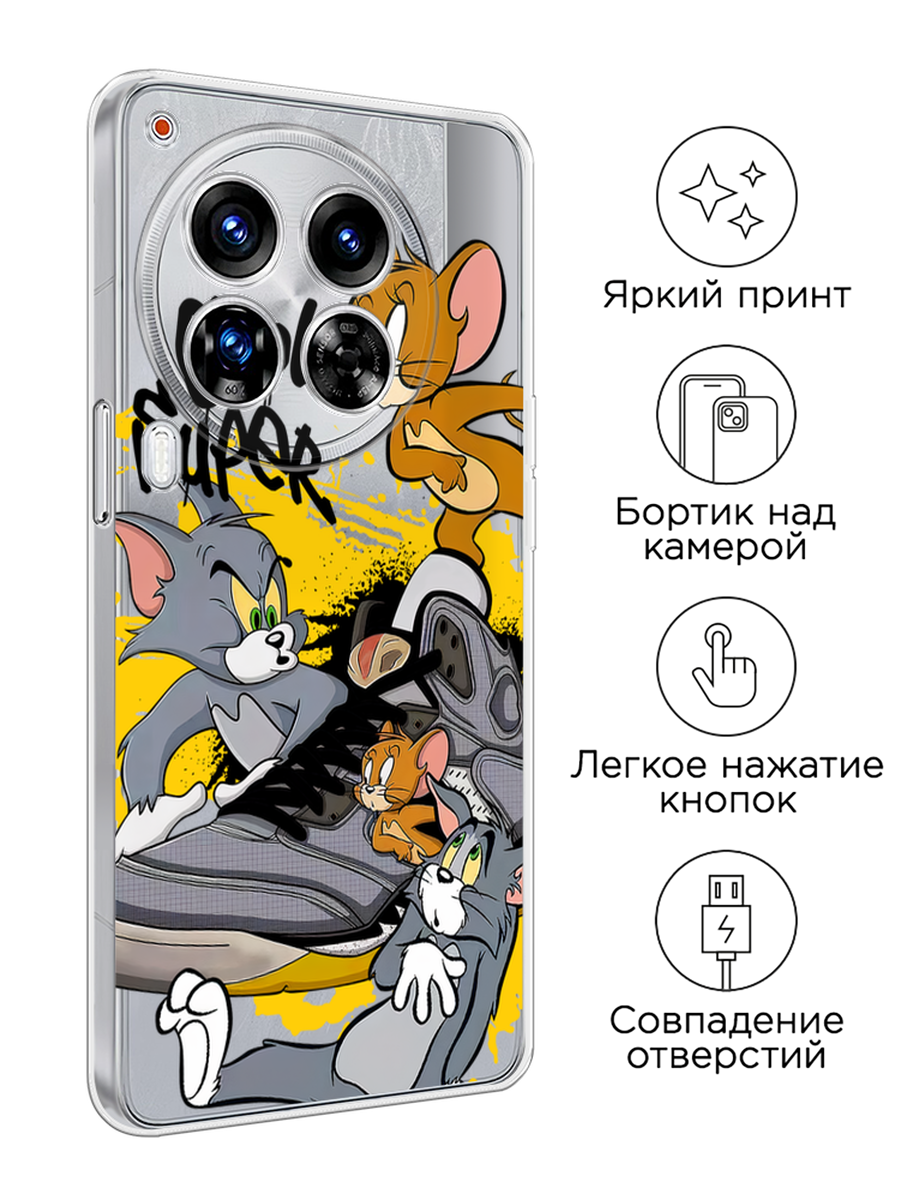 Отзывы на Чехол на Tecno Camon 30 Premier / Текно Камон 30 Премьер с принтом Том, Джерри и кроссовок, прозрачный