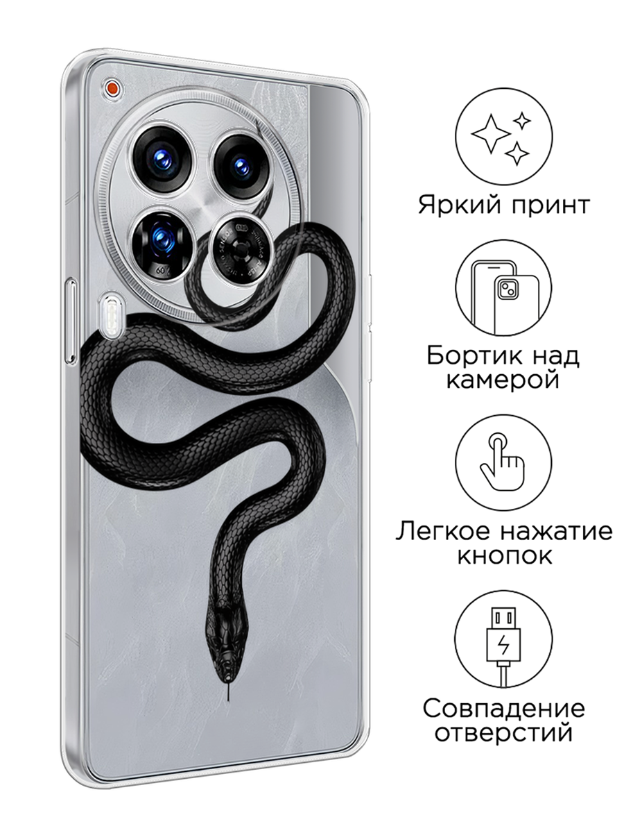 Отзывы на Чехол на Tecno Camon 30 Premier / Текно Камон 30 Премьер с принтом Изгиб змеи black, прозрачный
