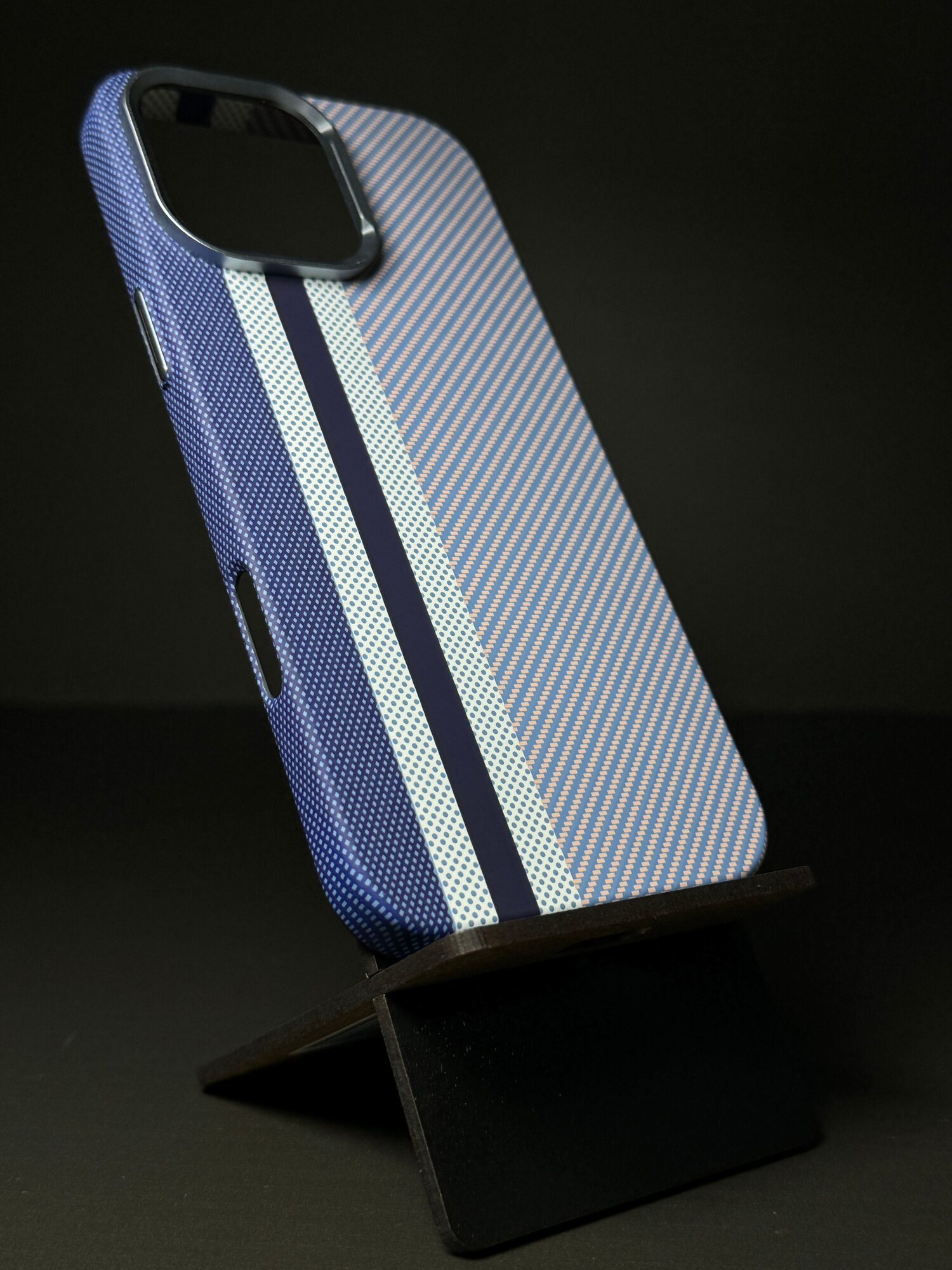 Чехол-накладка для Айфон 16 Про Макс с МагСейф из Кевлара / чехол на iPhone 16 Pro Max с MagSafe Kevlar LUXO Life+ / MOSBROS, карбоновый, Оранжево-синий, c полосой информация: