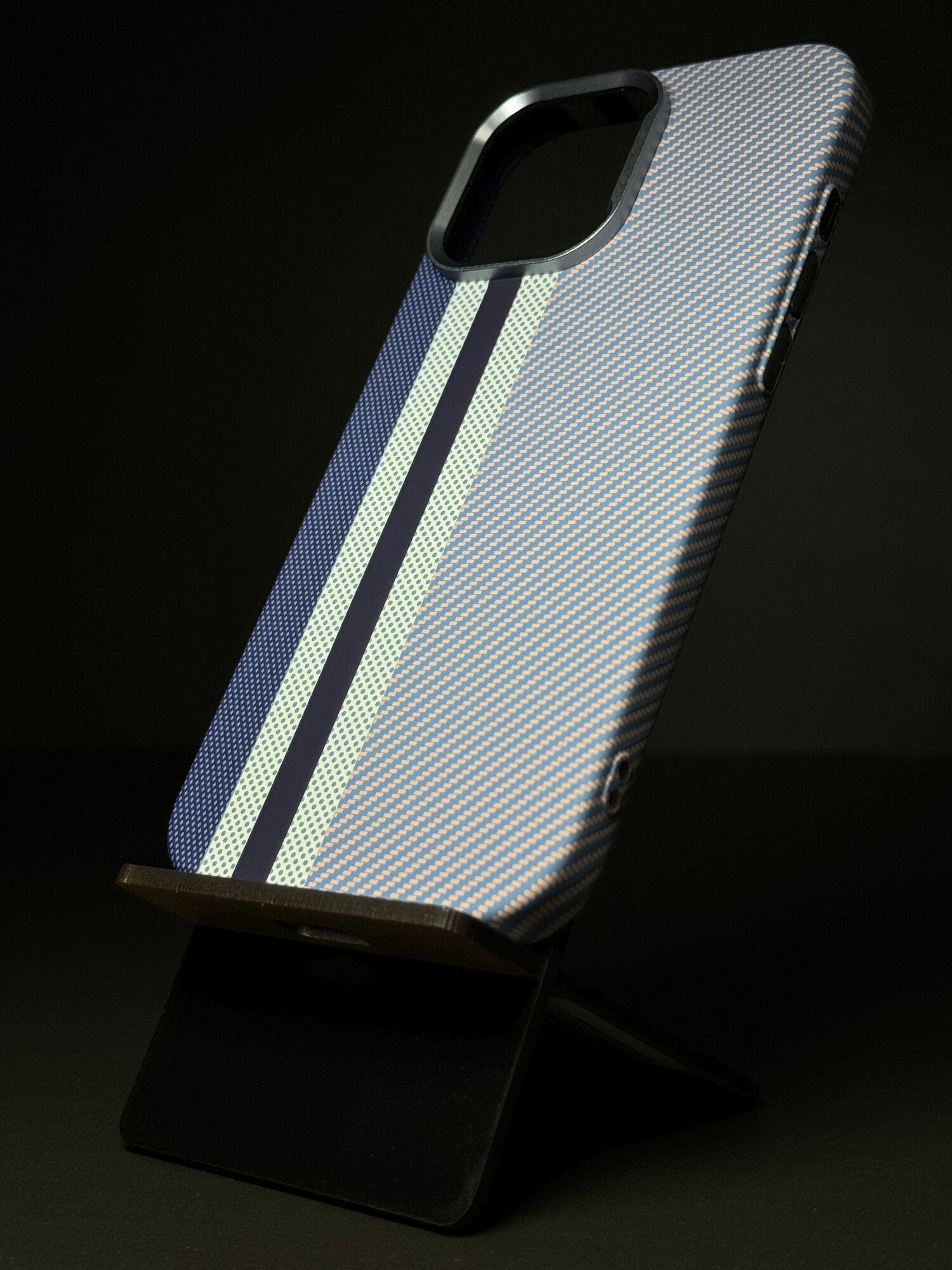 Отзывы на Чехол-накладка для Айфон 16 Про Макс с МагСейф из Кевлара / чехол на iPhone 16 Pro Max с MagSafe Kevlar LUXO Life+ / MOSBROS, карбоновый, Оранжево-синий, c полосой
