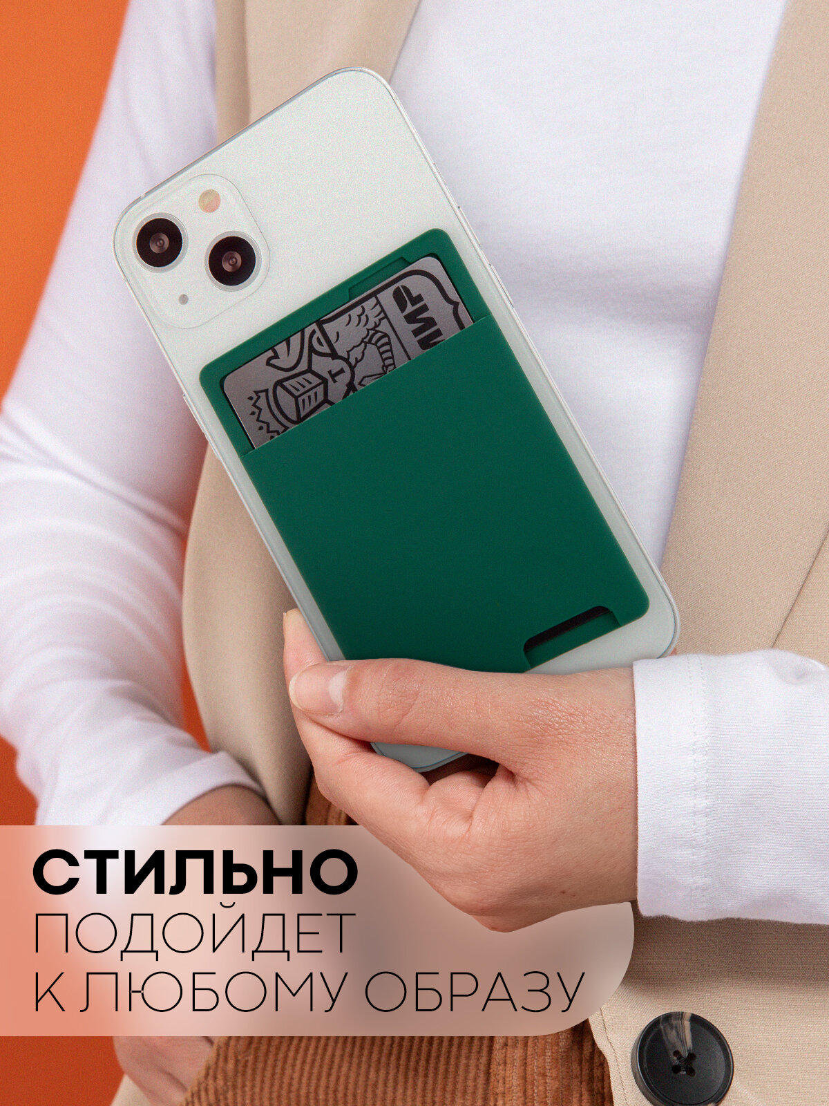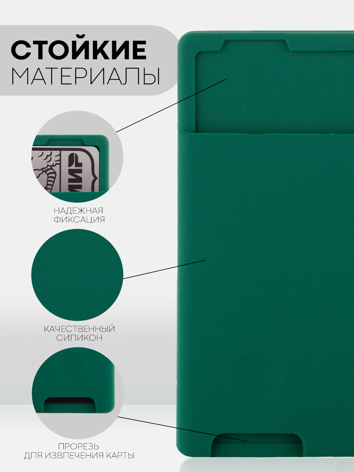 Отзывы на Силиконовый картхолдер на телефон Картофан самоклеящийся, темно-зелёный