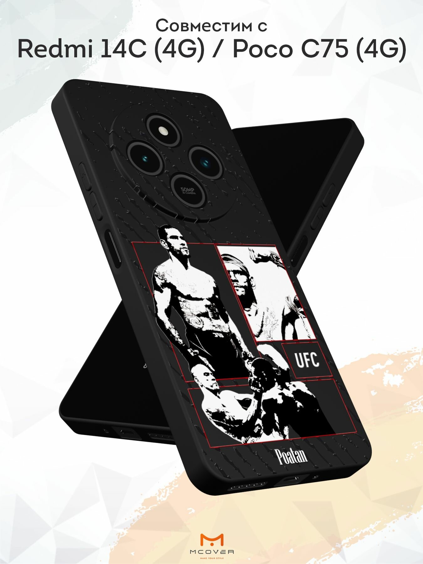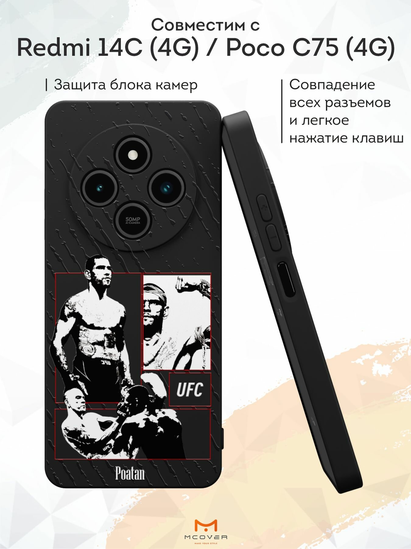 Силиконовый чехол Mcover на Redmi 14C (4G)/Poco C75 (4G), с принтом UFC Topuria 530 ₽