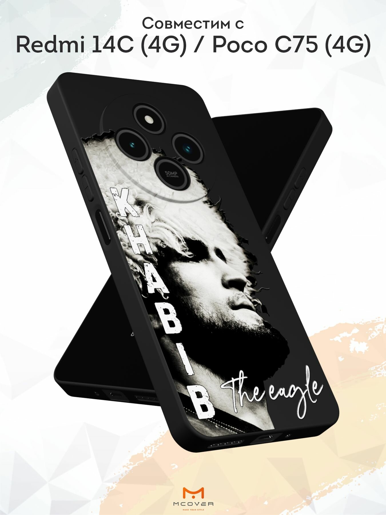 10 цен на Силиконовый чехол Mcover на Redmi 14C (4G)/Poco C75 (4G), с принтом Khabib the eagle