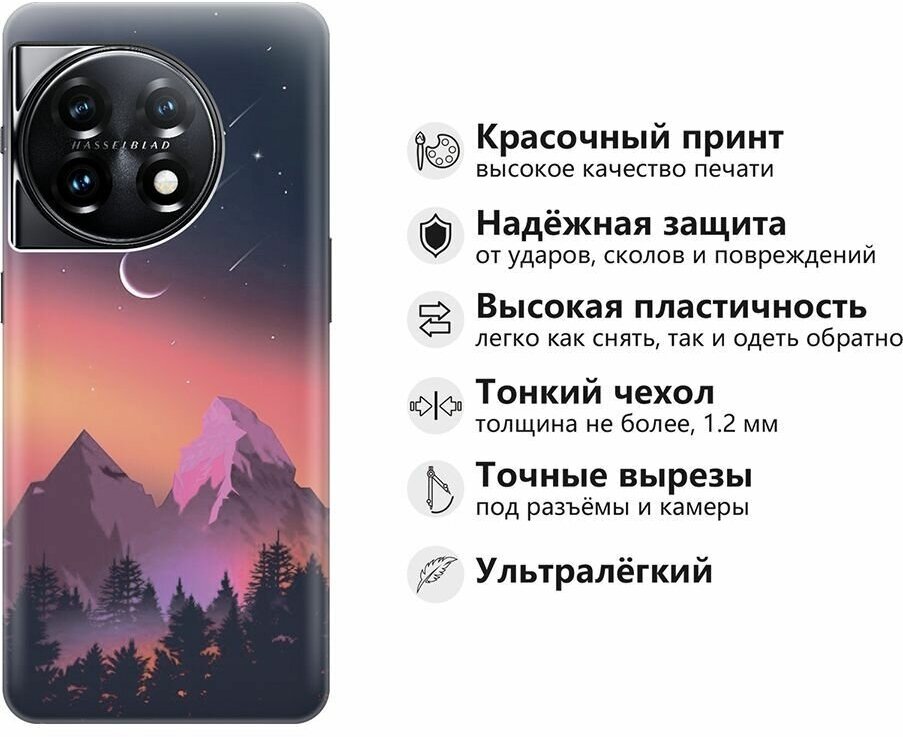 Отзывы на Силиконовый чехол на OnePlus 11, ВанПлюс 11 с принтом "Горы и звездопад"