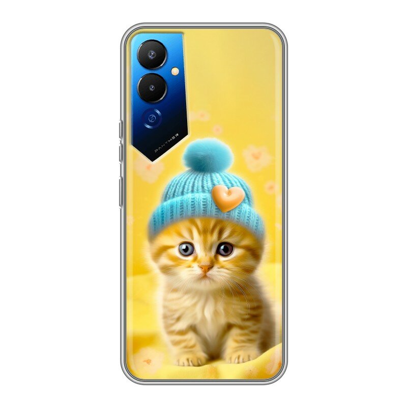 Дизайнерский силиконовый чехол для Текно Пова 4 / Tecno Pova 4 Котенок в шапке принт информация: