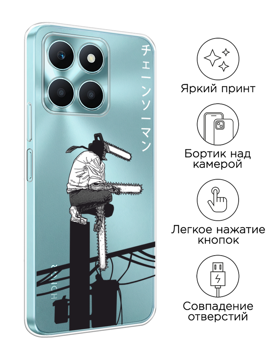Чехол на Honor X6A / Хонор X6A с принтом Денджи на столбе, прозрачный информация: