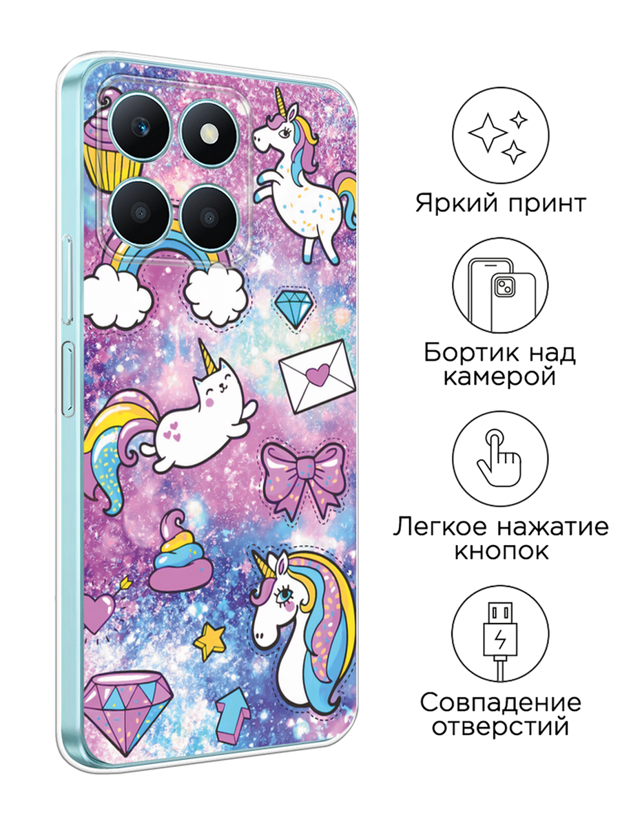 Силиконовый чехол на Honor X6A / Хонор X6A с принтом Rainbow doodles информация: