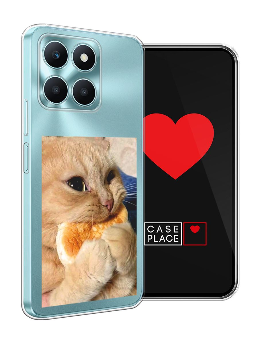 Чехол на Honor X6A / Хонор X6A с принтом Котик кушает, прозрачный информация: