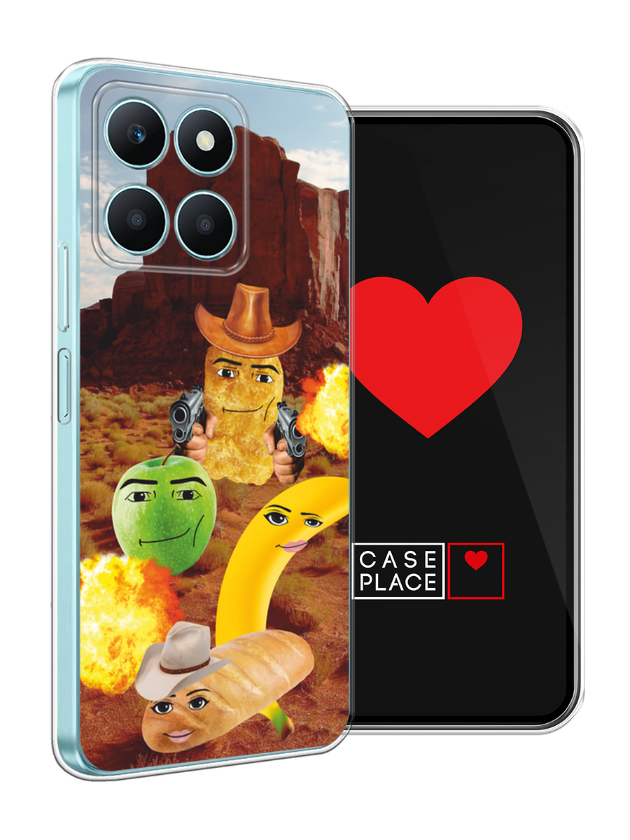 10 цен на Силиконовый чехол на Honor X6A / Хонор X6A с принтом Мемные лица ковбои