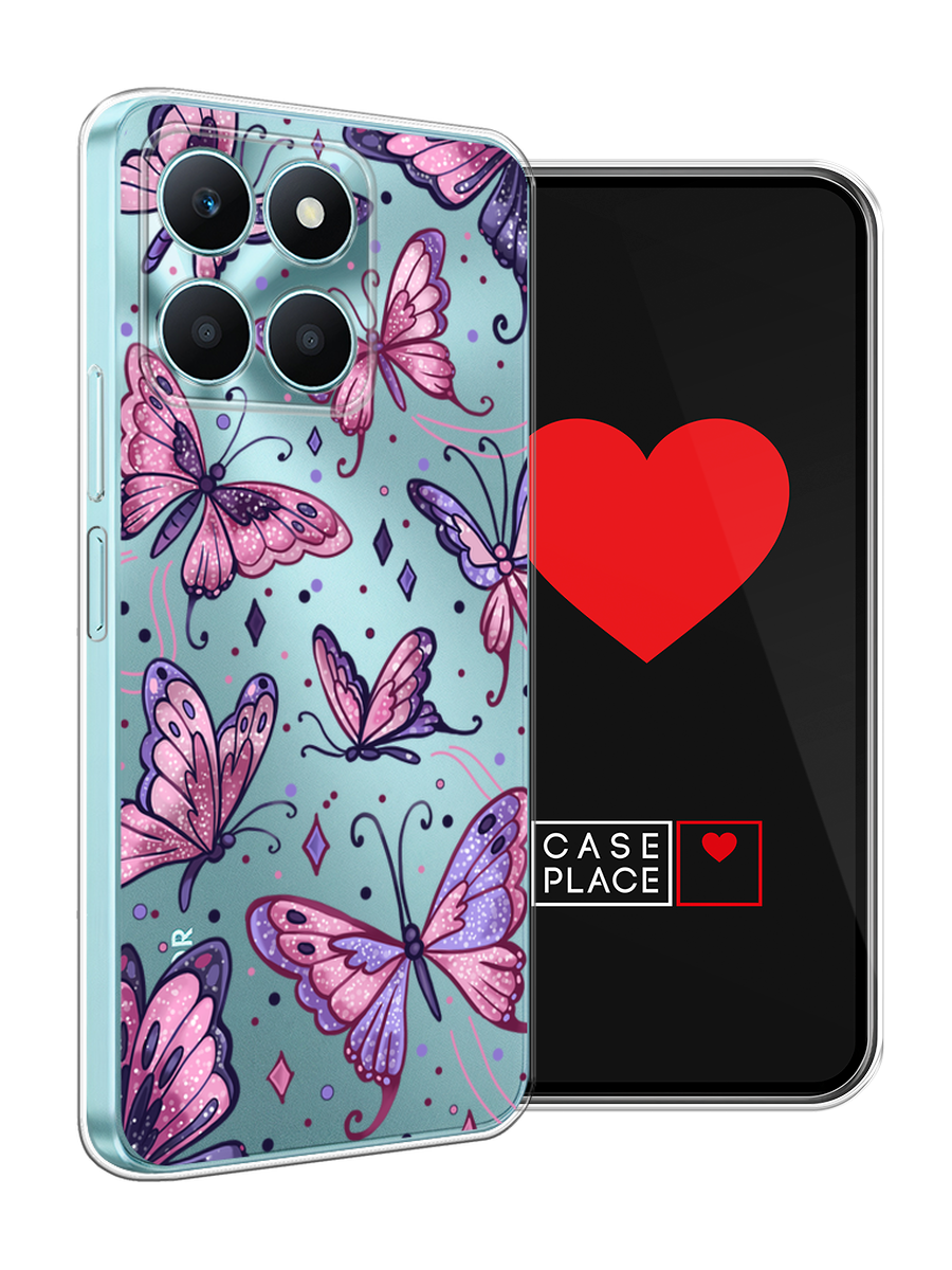 10 цен на Чехол на Honor X6A / Хонор X6A с принтом Фиолетовые бабочки, прозрачный