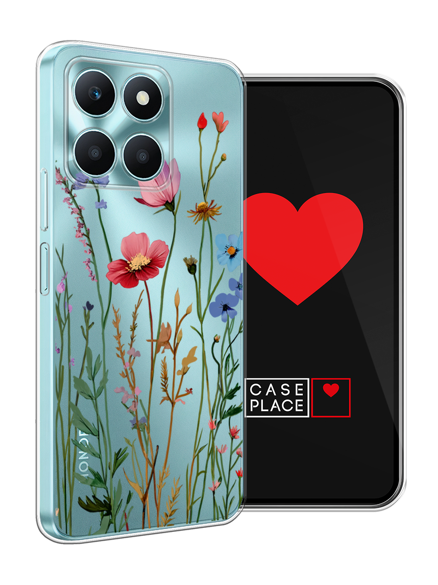 Чехол на Honor X6A / Хонор X6A с принтом Высокие цветы, прозрачный информация: