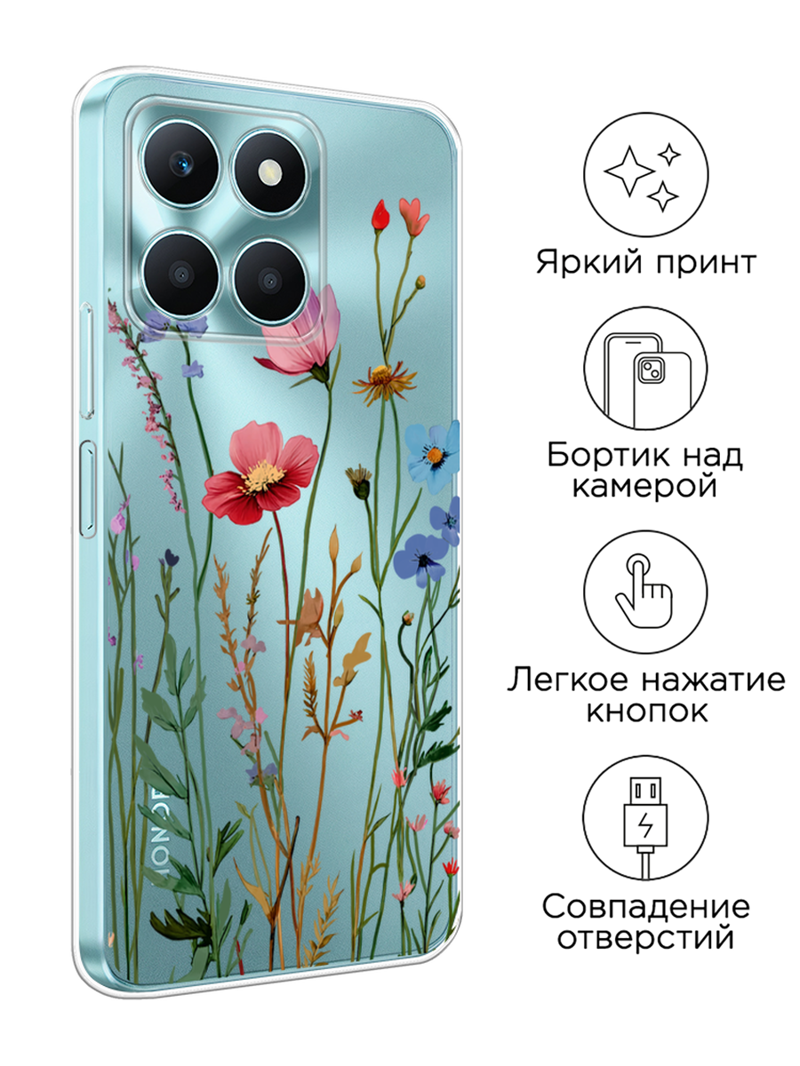 10 цен на Чехол на Honor X6A / Хонор X6A с принтом Высокие цветы, прозрачный