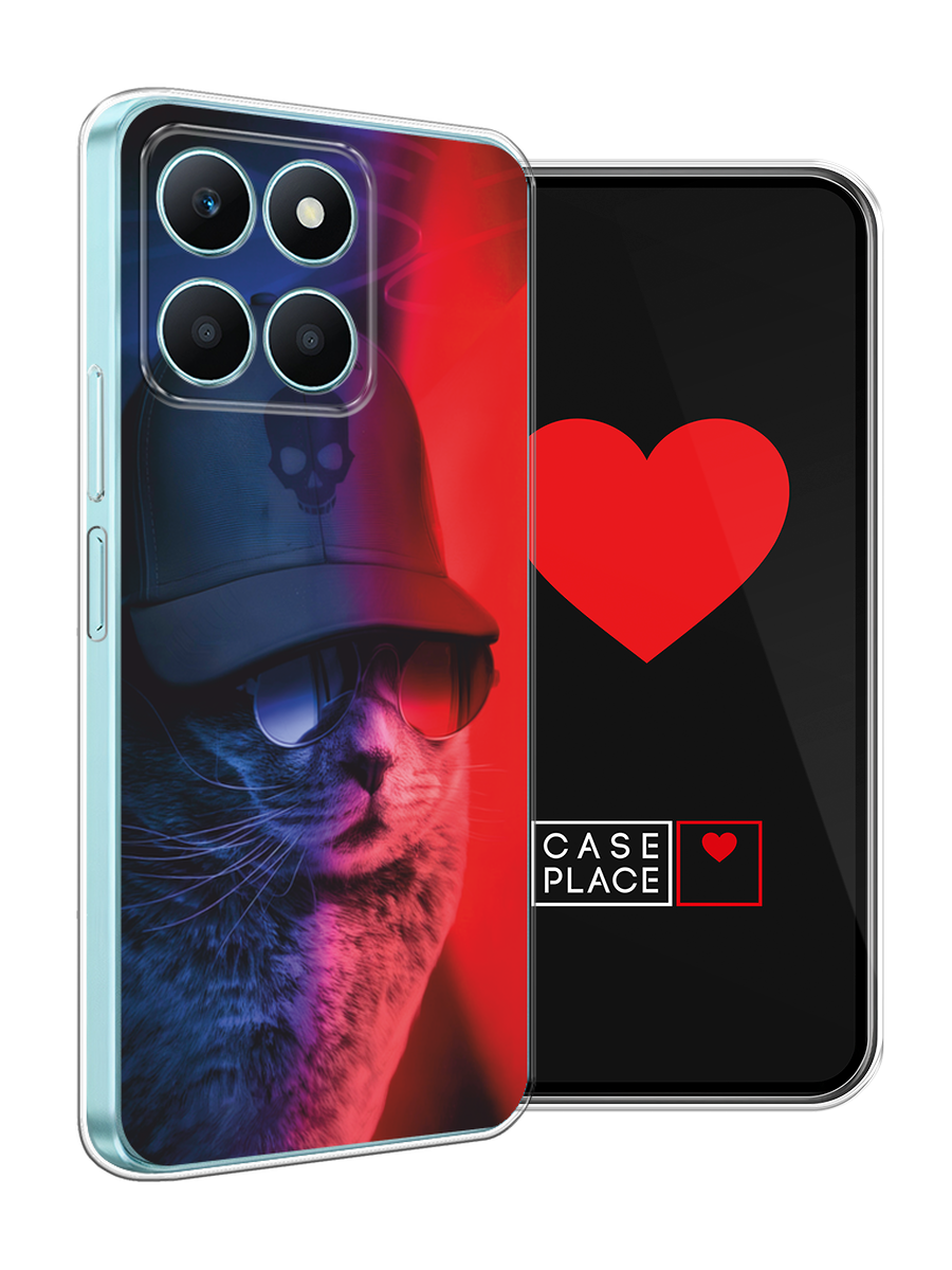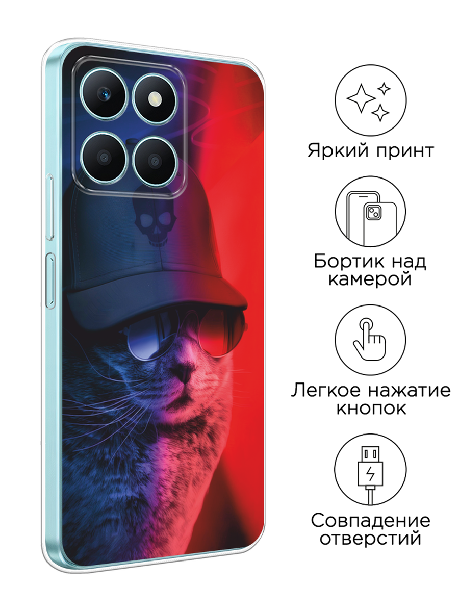 Чехол на Honor X6A / Хонор X6A с принтом Кот в очках, прозрачный 609 ₽