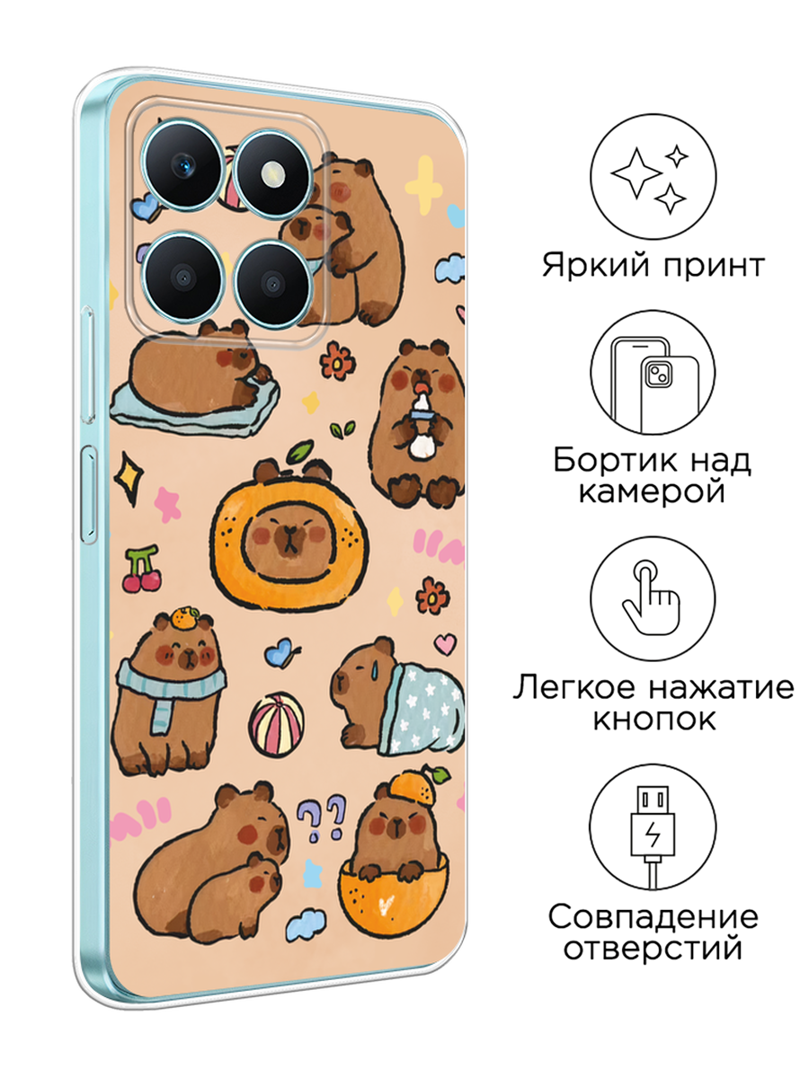 10 цен на Силиконовый чехол на Honor X6A / Хонор X6A с принтом Капибары рисунок