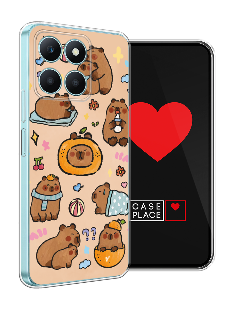 Силиконовый чехол на Honor X6A / Хонор X6A с принтом Капибары рисунок информация: