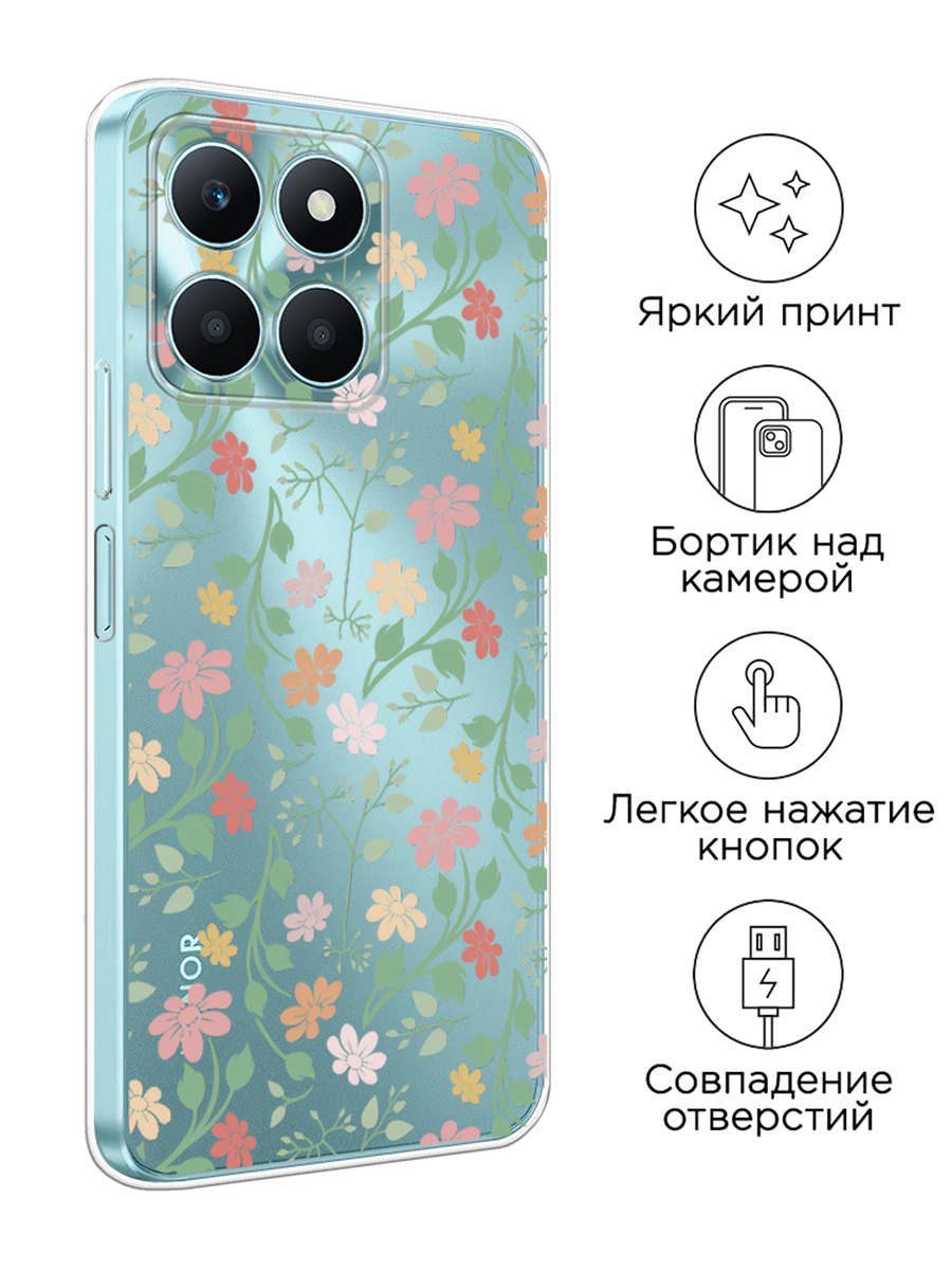 Чехол на Honor X6A / Хонор X6A с принтом Высокие цветы, прозрачный 609 ₽