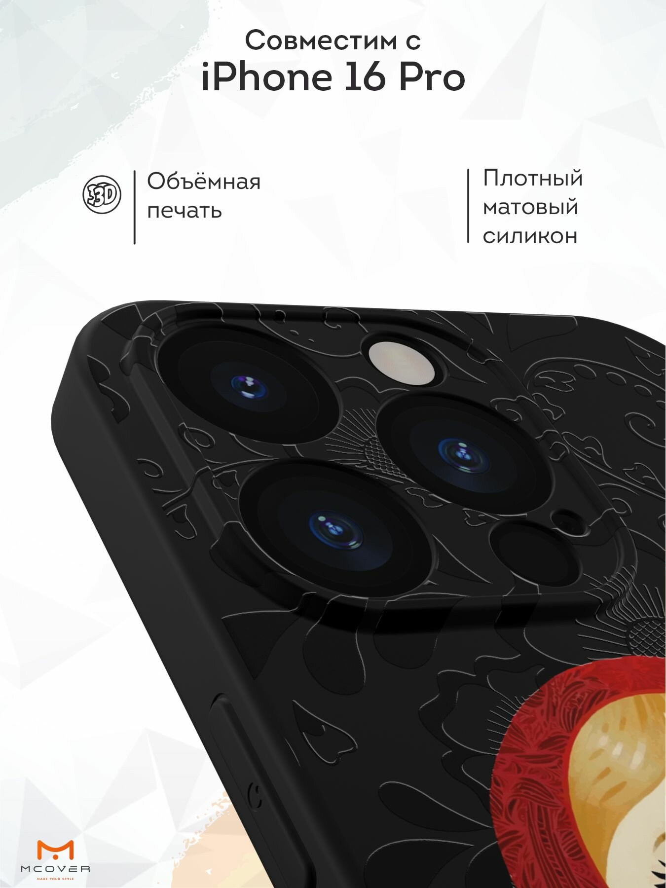 Силиконовый чехол Mcover на iPhone 16 Pro, с принтом Матрешка Russia 530 ₽