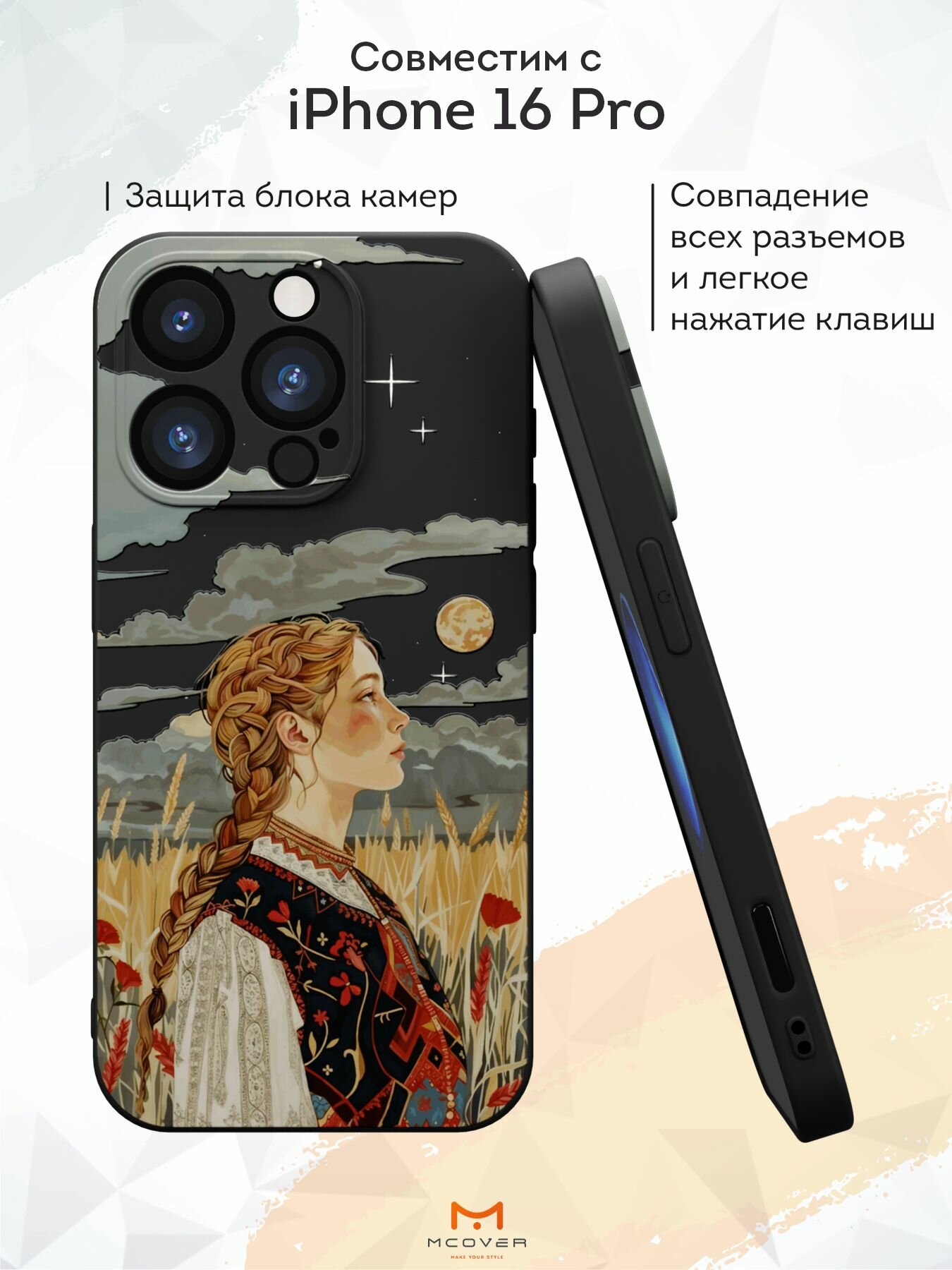 10 цен на Силиконовый чехол Mcover на iPhone 16 Pro, с принтом Девушка с косой в поле