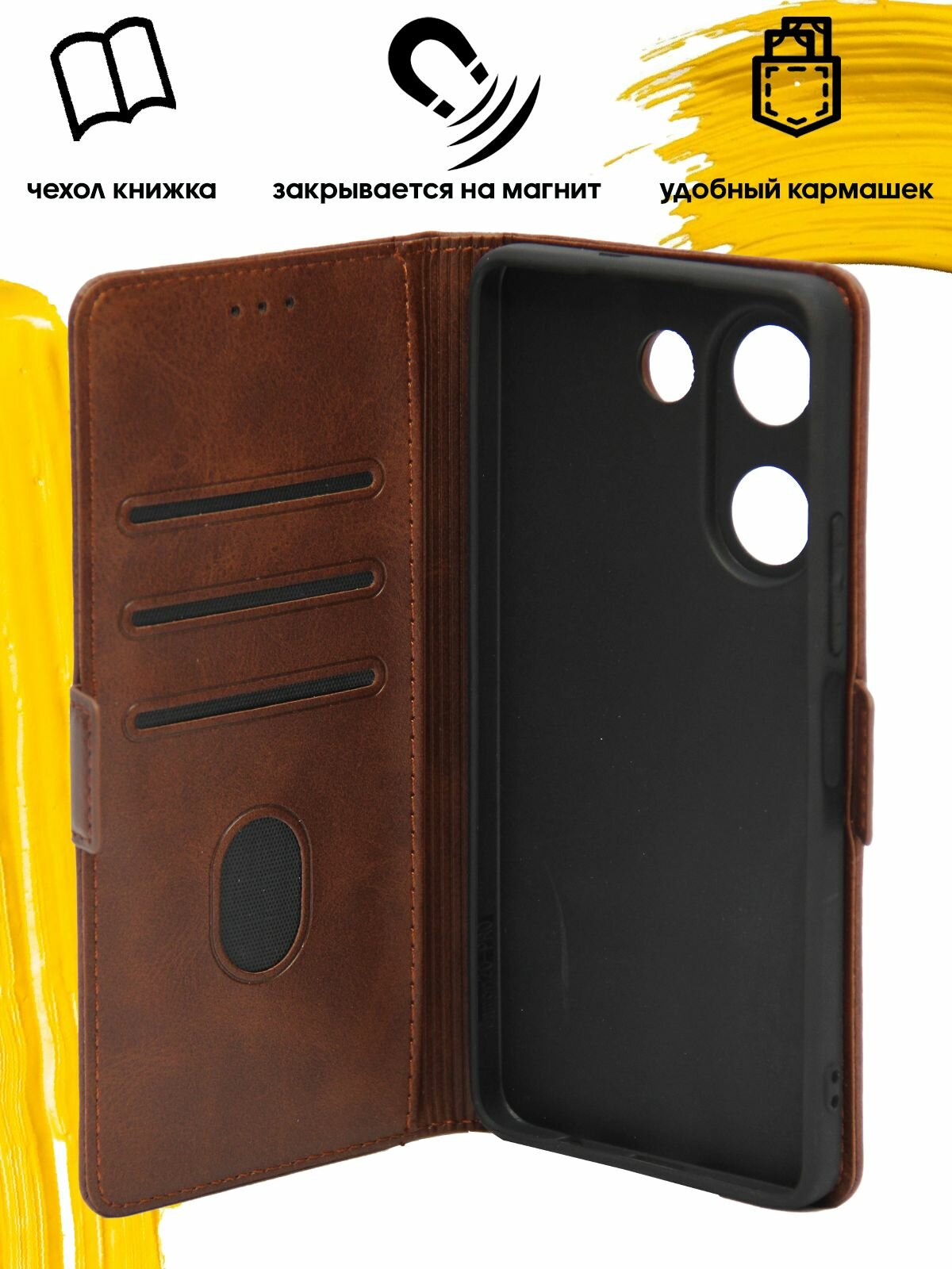 Отзывы на Чехол книжка для Tecno Camon 20 & Camon 20 Pro 4G / текно камон 20 & камон 20 про 4Г с боковым магнитом коричневый