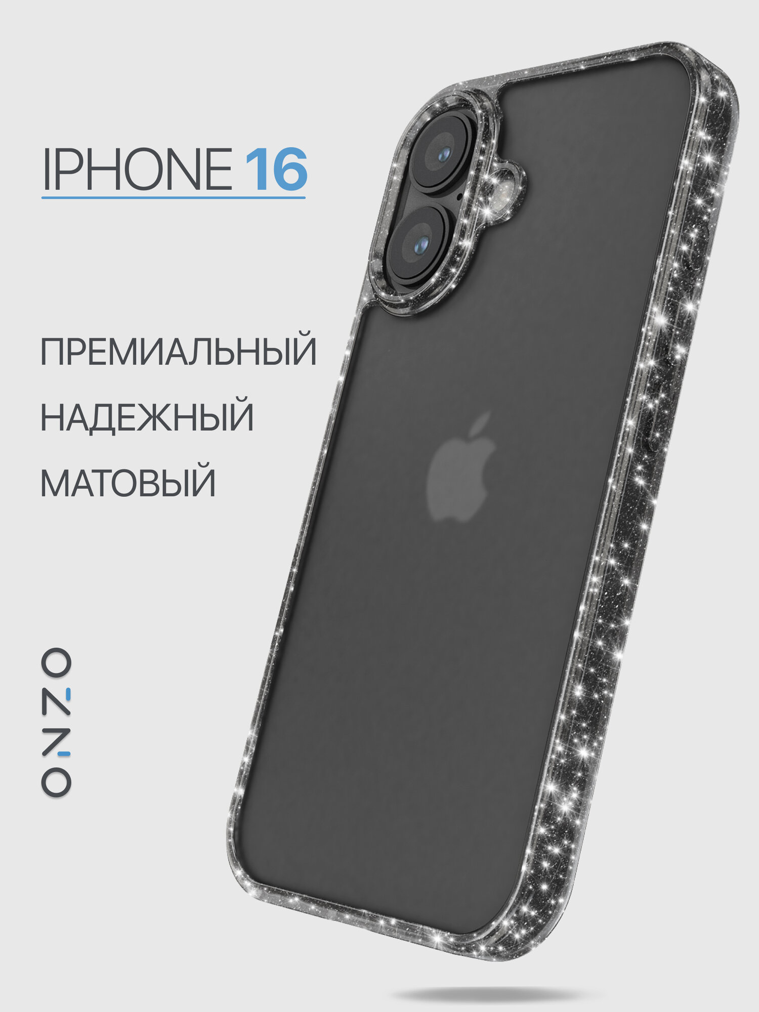 Отзывы на Матовый чехол на Айфон 16 темно-прозрачный блестящий / Накладка на iPhone 16 с рельефными краями