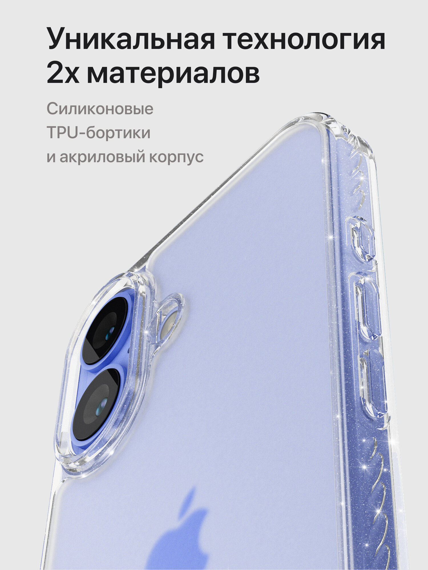 Отзывы на Прозрачный чехол для iPhone 16 с блестками / Матовый бампер на Айфон 16 с ребристыми гранями