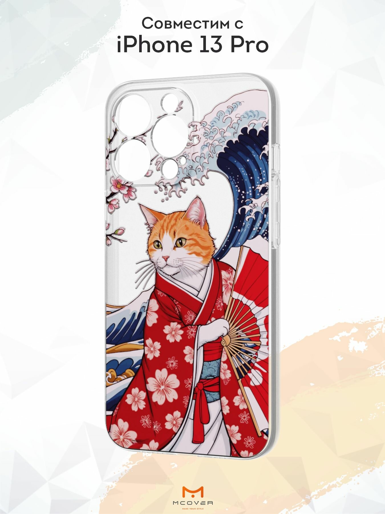 Чехол Mcover с рисунком Кот в кимоно на iPhone 13 Pro, силиконовый, матовый, защита камеры 530 ₽