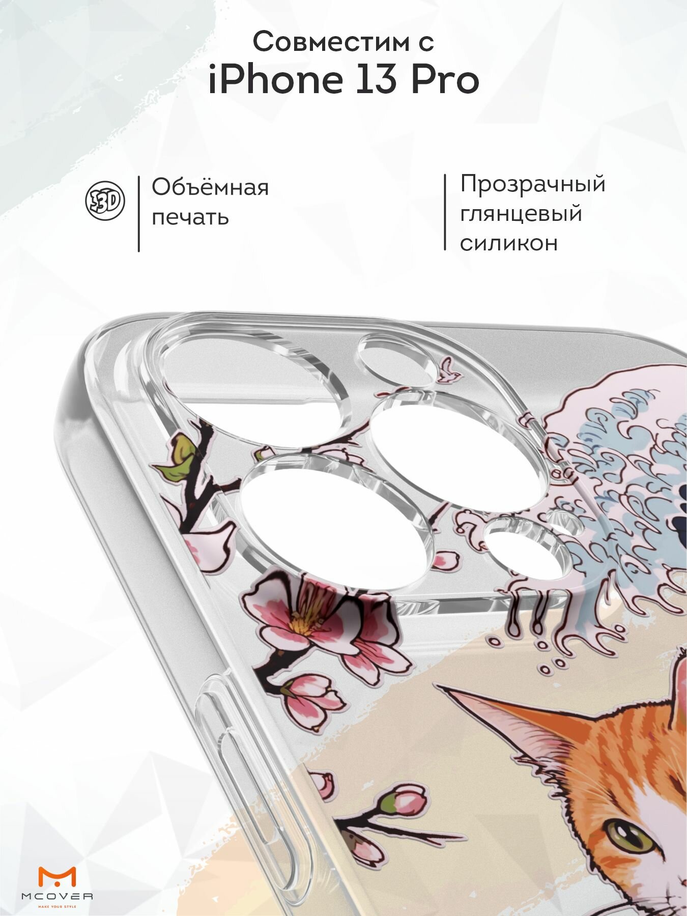 Отзывы на Чехол Mcover с рисунком Кот с веером на iPhone 13 Pro, силикон, прозрачный, защита камеры