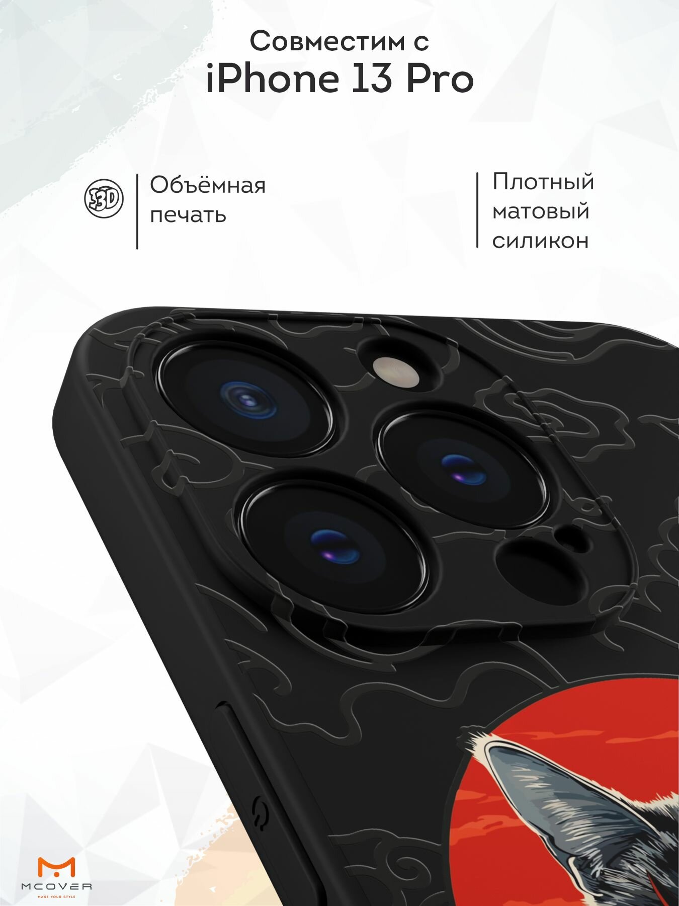 Чехол Mcover с рисунком Японский кот на iPhone 13 Pro, силиконовый, матовый, защита камеры 530 ₽