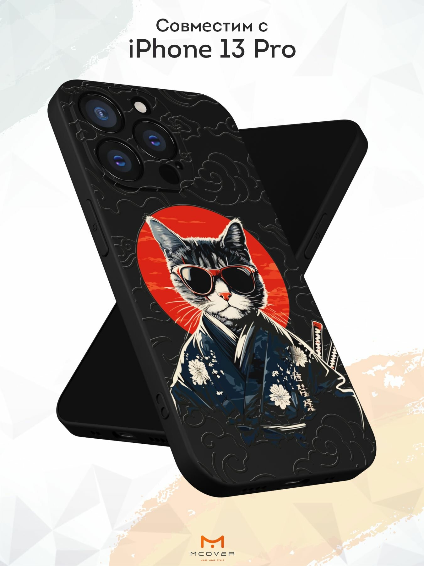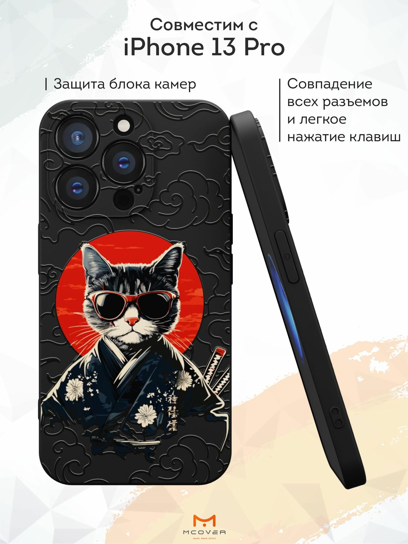 Чехол Mcover с рисунком Кот в кимоно на iPhone 13 Pro, силиконовый, матовый, защита камеры информация: