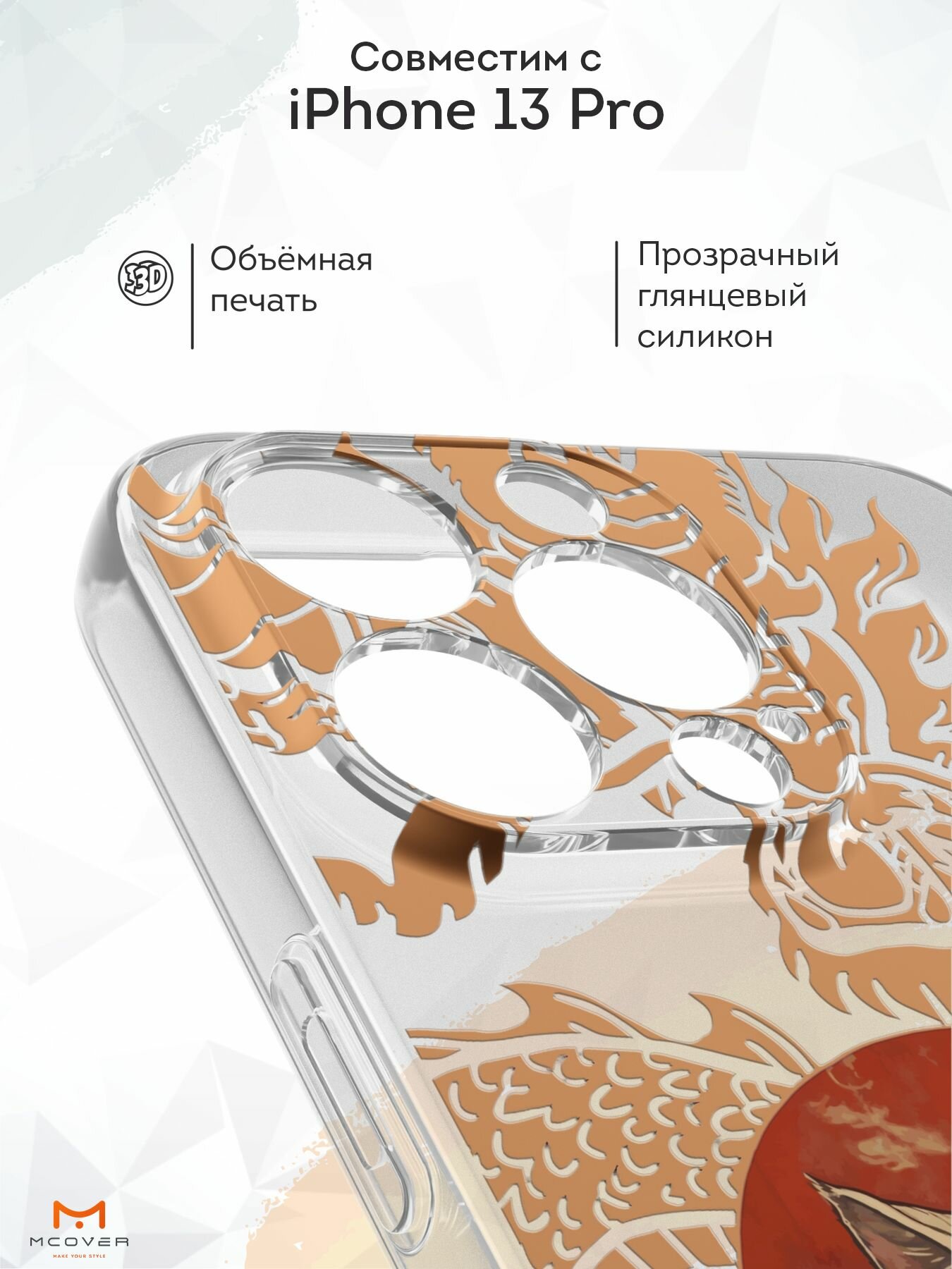 Чехол Mcover с рисунком Кот с веером на iPhone 13 Pro, силикон, прозрачный, защита камеры 530 ₽