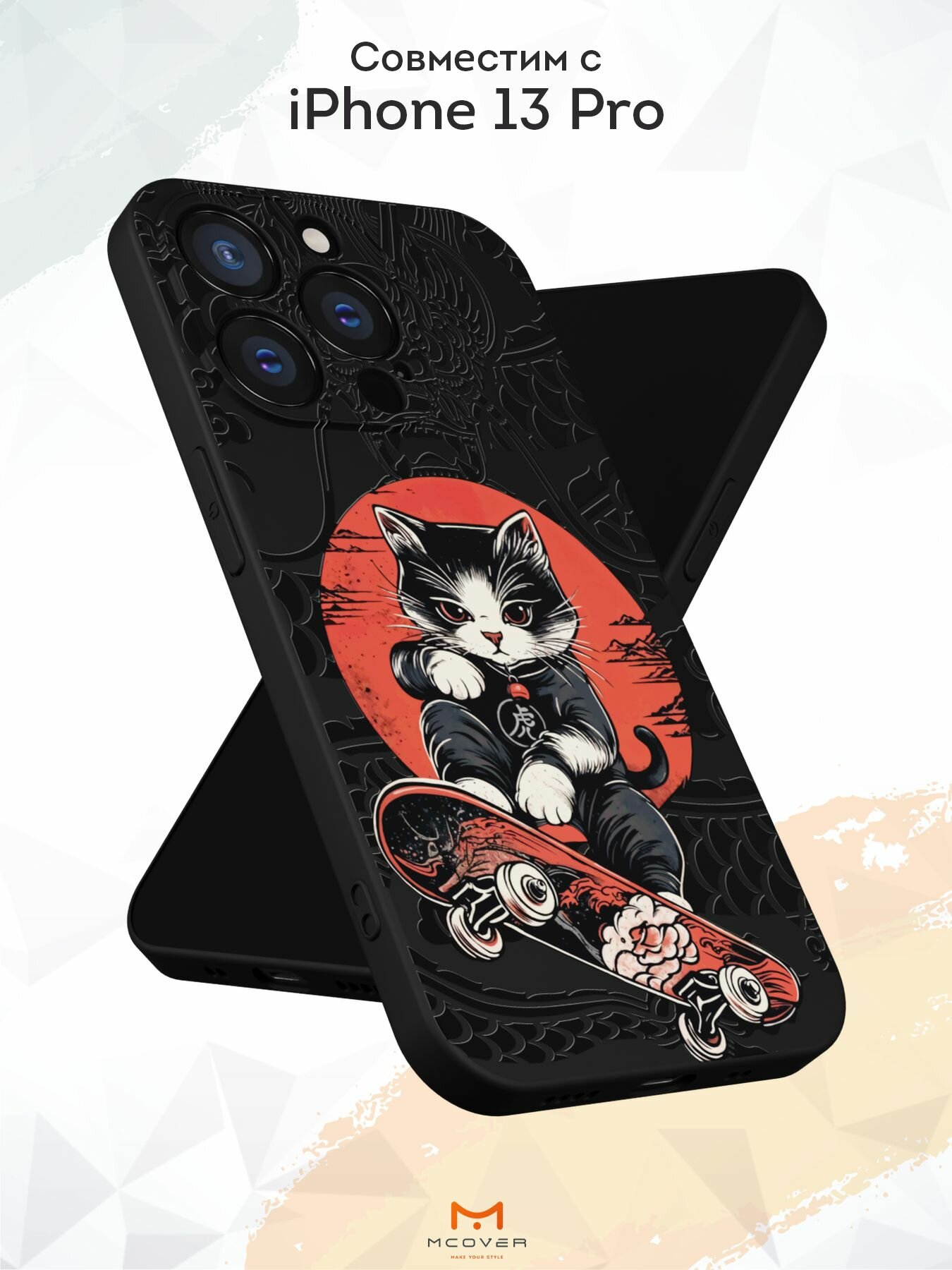 Чехол Mcover с рисунком Кот скейтер на iPhone 13 Pro, силиконовый, матовый, защита камеры информация: