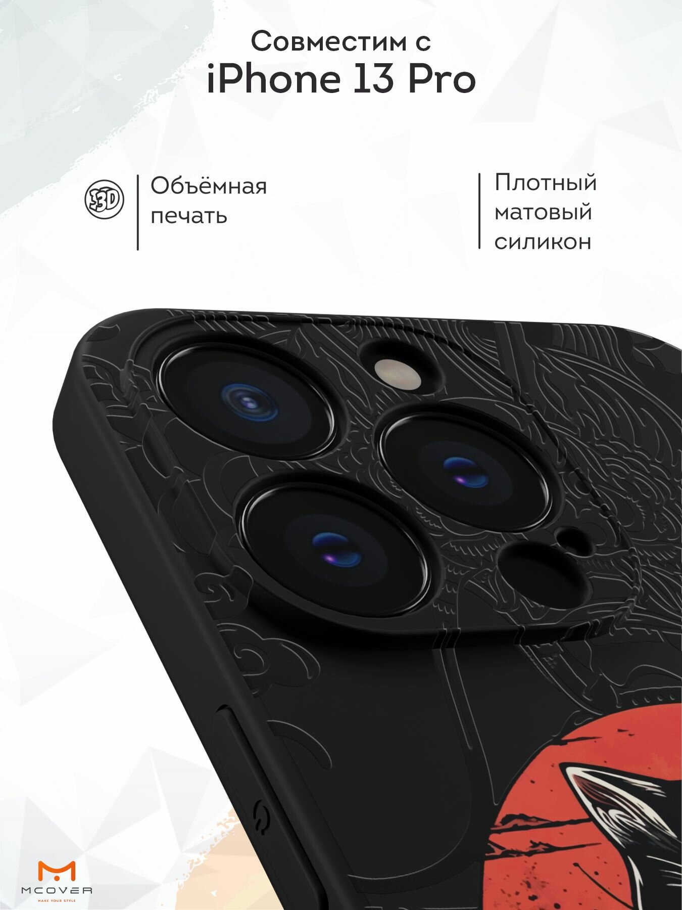 Чехол Mcover с рисунком Японский кот на iPhone 13 Pro, силиконовый, матовый, защита камеры 530 ₽