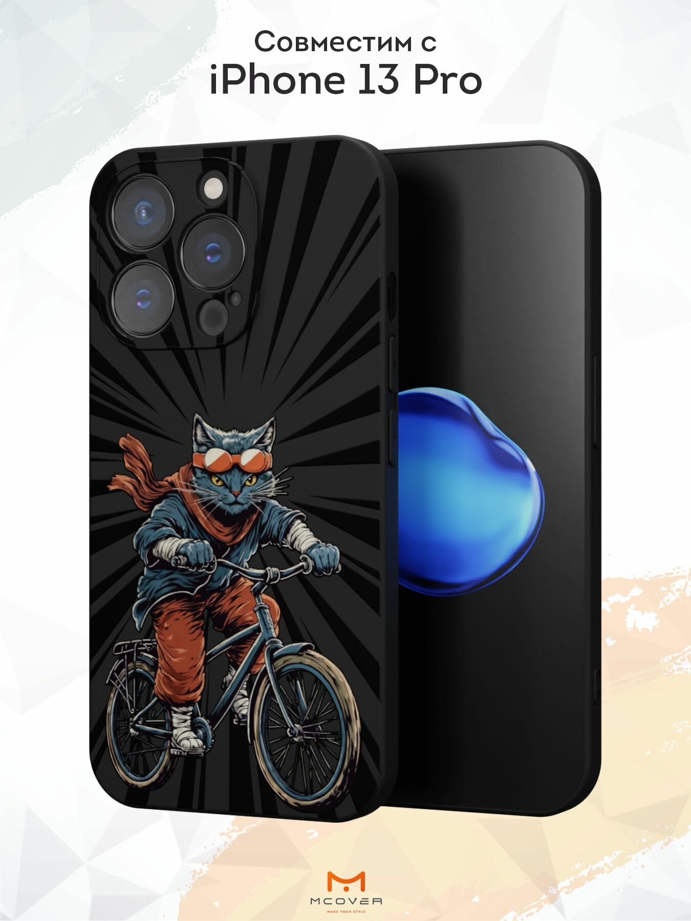 Чехол Mcover с рисунком Кот на велике на iPhone 13 Pro, силиконовый, матовый, защита камеры информация: