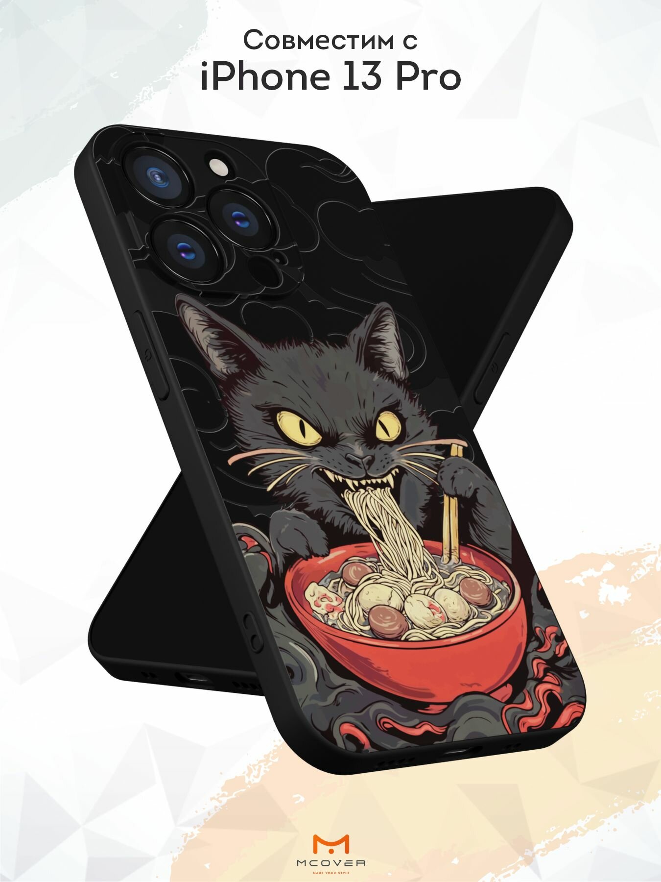 Чехол Mcover с рисунком Кот ест лапшу на iPhone 13 Pro, силиконовый, матовый, защита камеры информация: