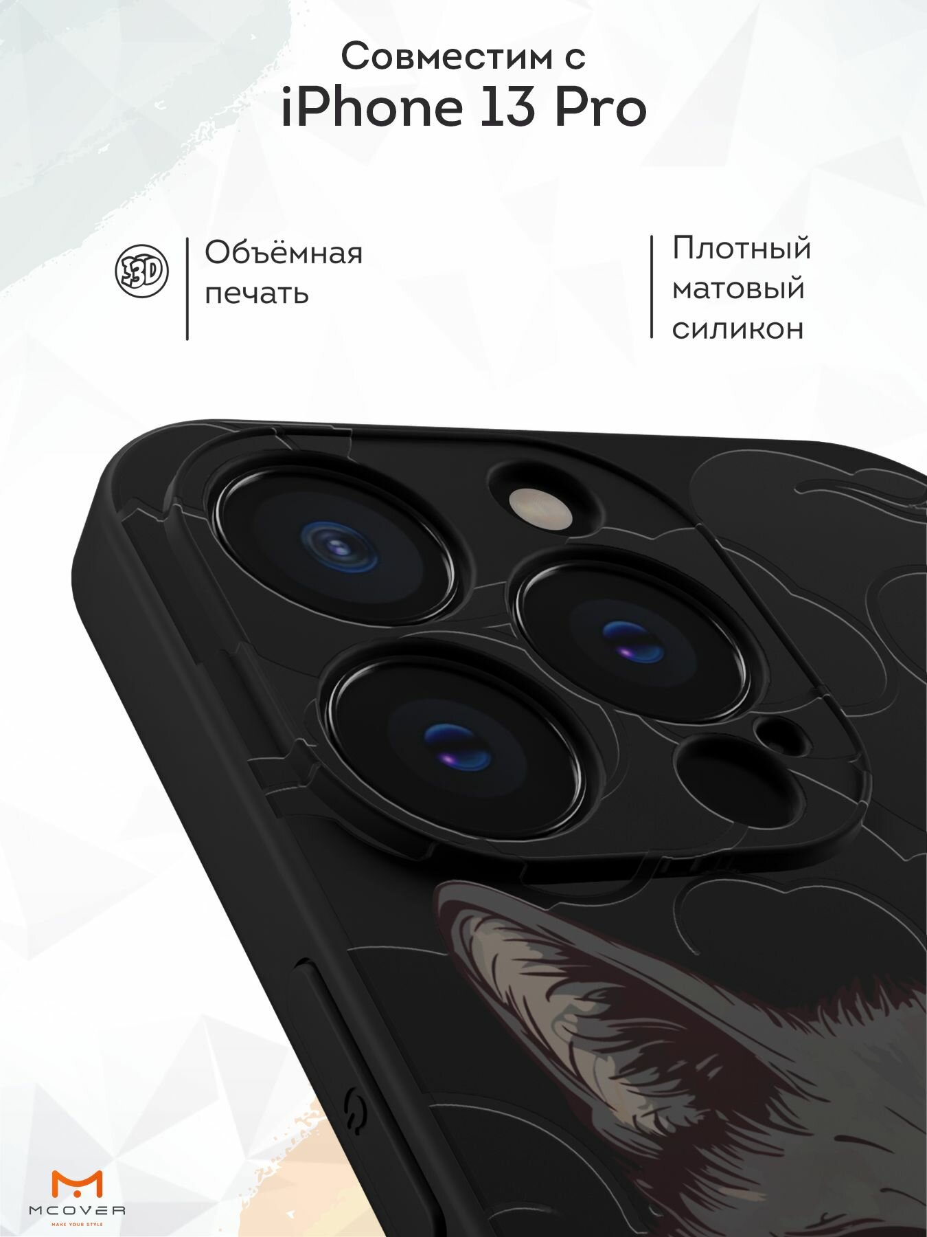 Чехол Mcover с рисунком кот в очках на iPhone 13 Pro, силиконовый, матовый, защита камеры 530 ₽