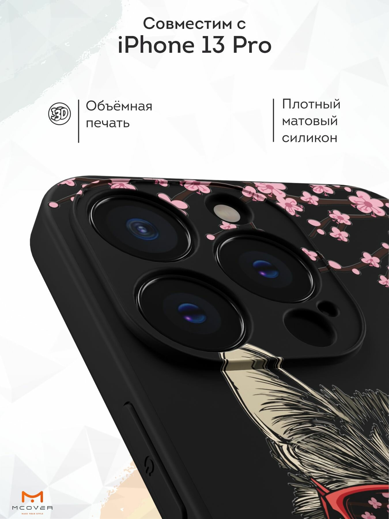 Чехол Mcover с рисунком Кот в кимоно на iPhone 13 Pro, силиконовый, матовый, защита камеры 530 ₽