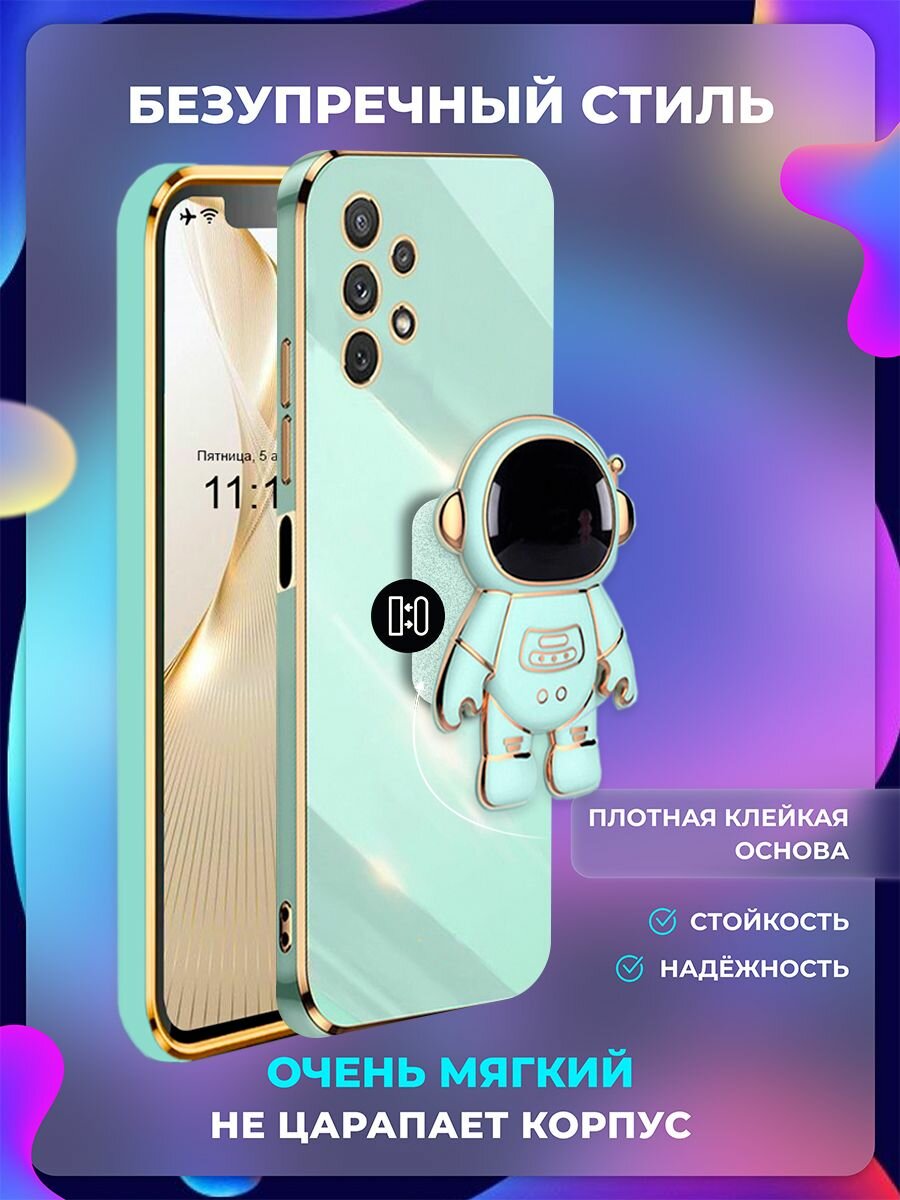 Чехол на Samsung Galaxy A13 4G защитный бампер с подставкой-попсокетом Космонавт на Самсунг Галакси А13 4 Мятный информация: