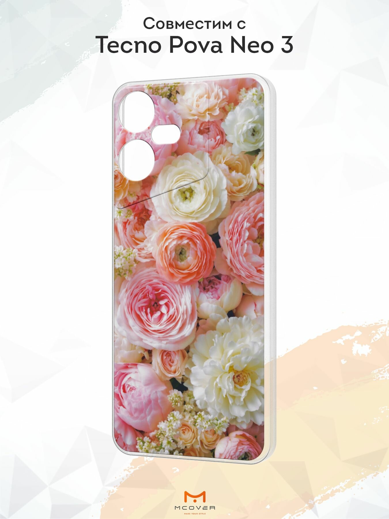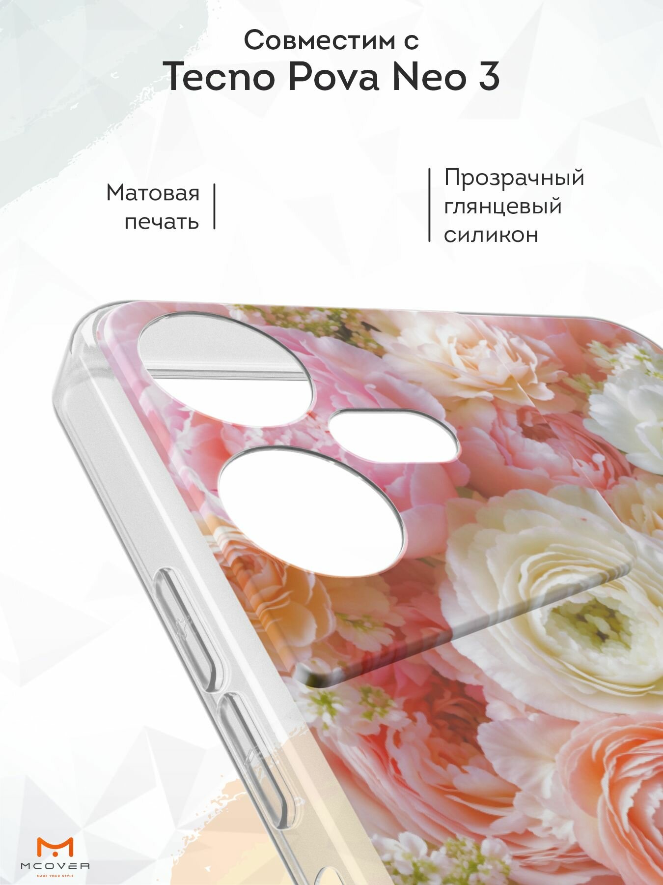 Силиконовый чехол Mcover для Tecno Pova Neo 3 (Техно Пова Нео 3), Пионы разные информация: