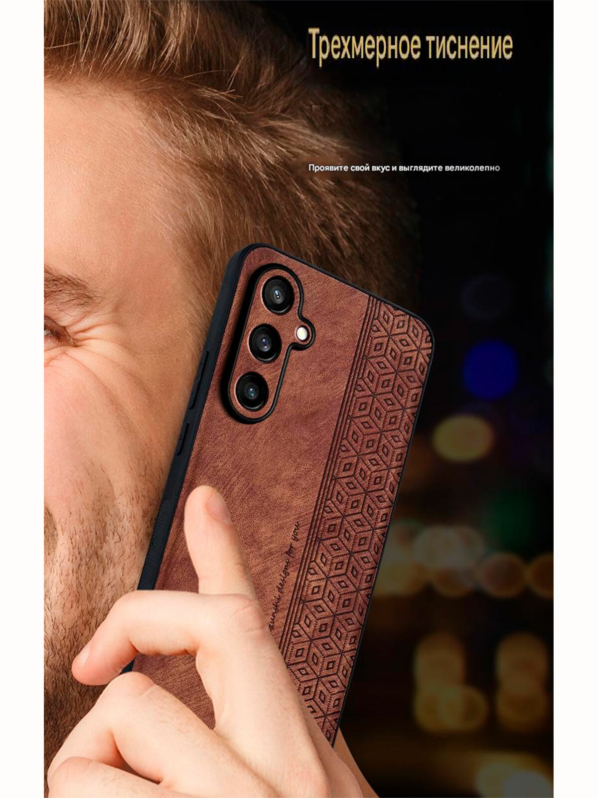 10 цен на Чехол для Samsung Galaxy A56 кожаный с тиснением / Самсунг А56 с защитой камеры (синяя)