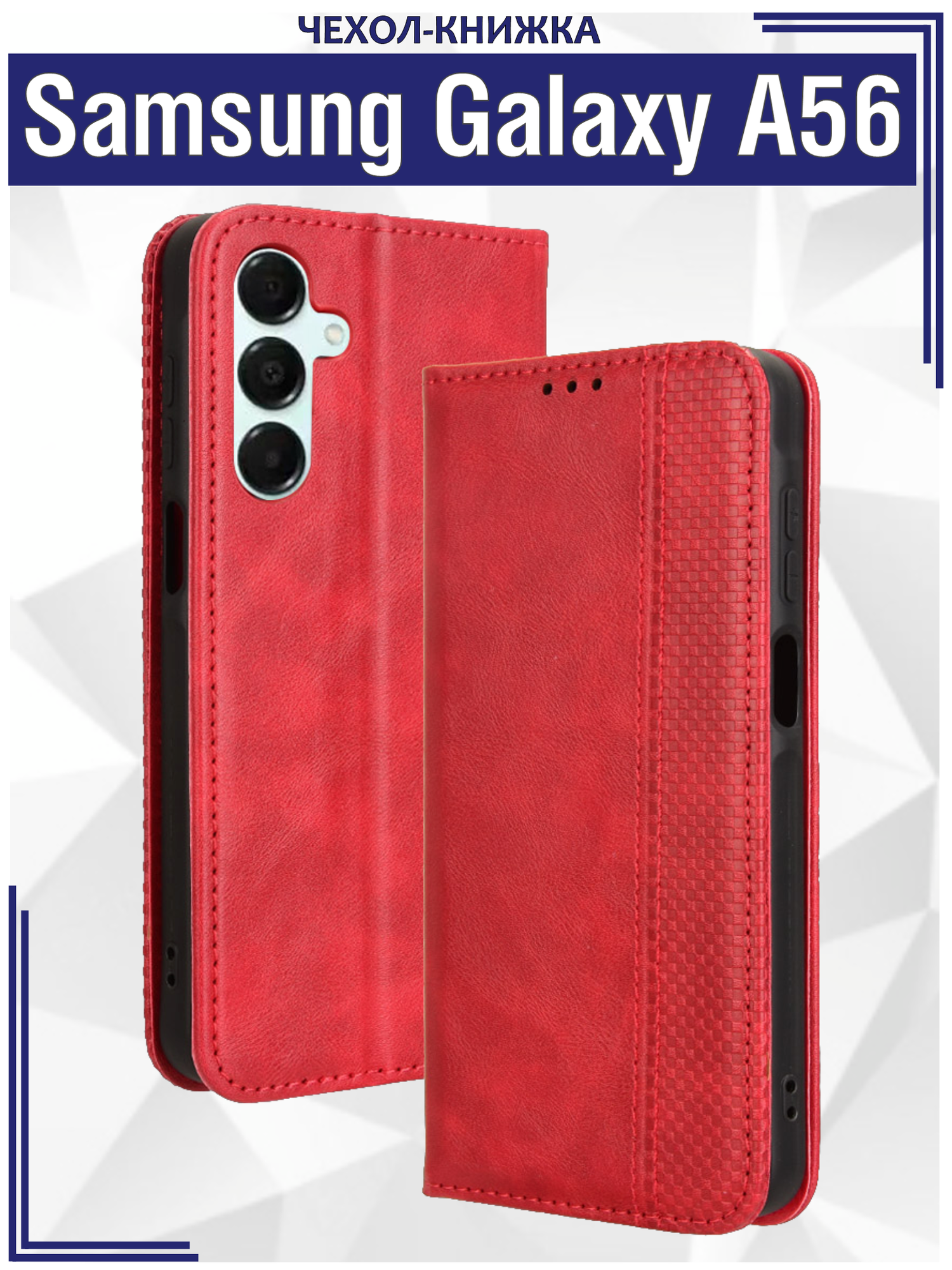 Чехол книжка для Samsung Galaxy A56 с магнитом и отделением под карты / Самсунг Галакси А56 (красная) информация: