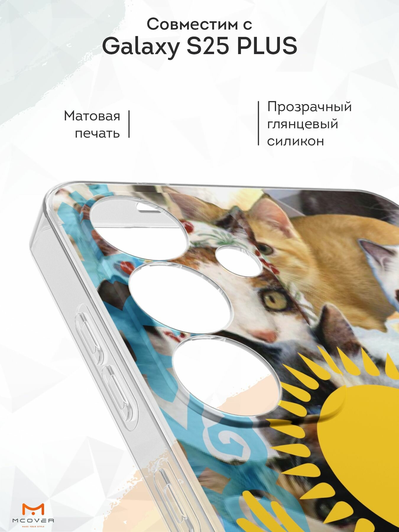 Силиконовый чехол Mcover, на Galaxy S25 Plus, с принтом Казахские котята, прозрачный, защита камеры информация: