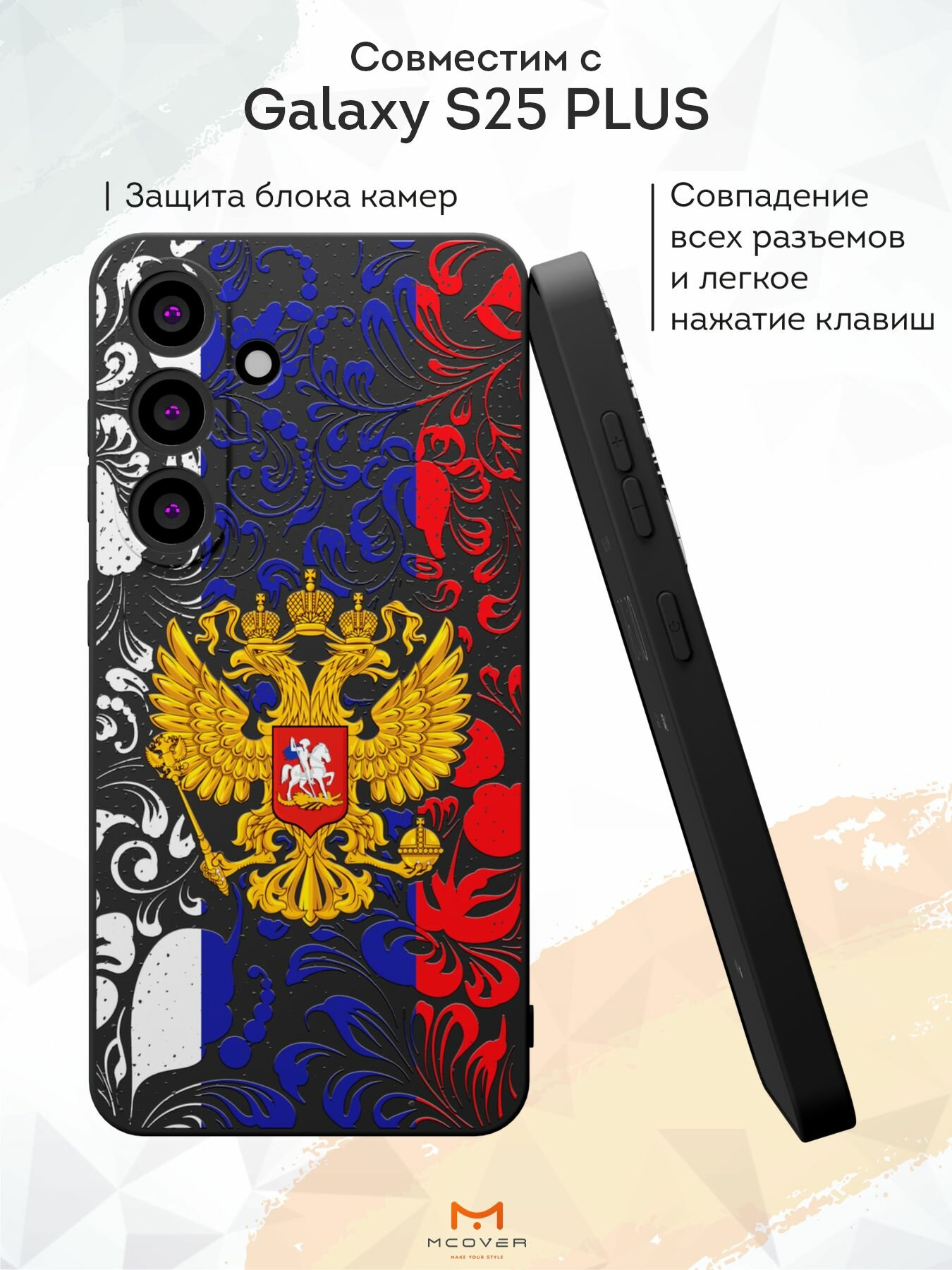 Отзывы на Силиконовый чехол Mcover, на Galaxy S25 Plus, с принтом Символика РФ, черный, защита камеры