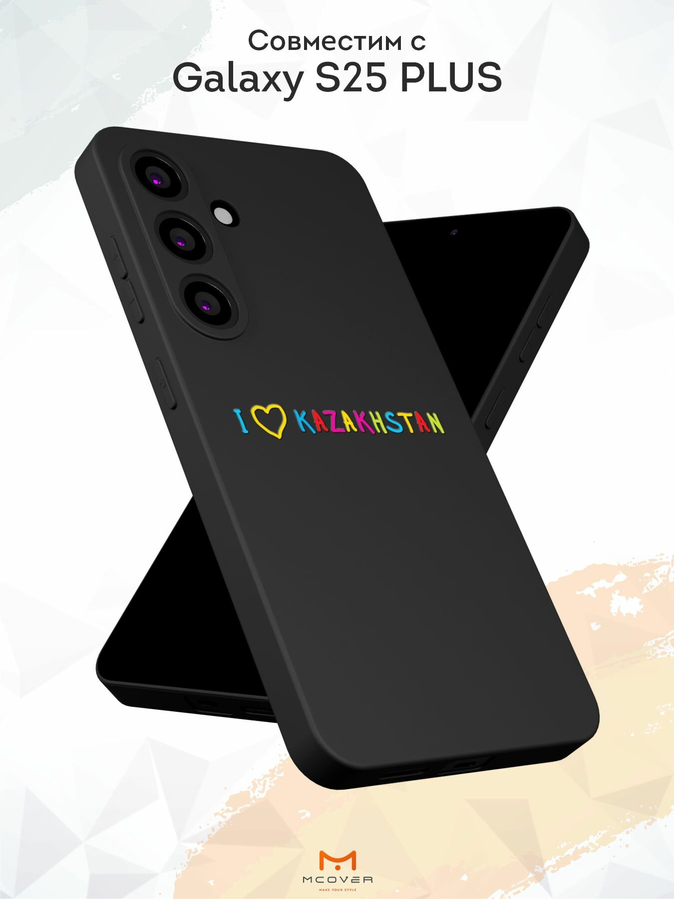 Силиконовый чехол Mcover, на Galaxy S25 Plus, с принтом Люблю Казахстан, черный, защита камеры информация: